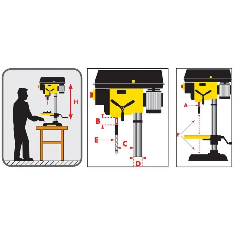 B - cursa max. burghiu 85 mm