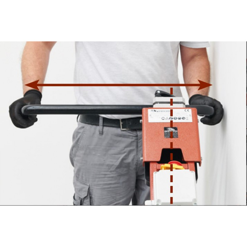 Roțile de alunecare și mânerul glisant, în combinație cu dispozitivul de protecție a discului, adaptabil la orice situație, permit mașinii să lucreze foarte aproape de pereți.
