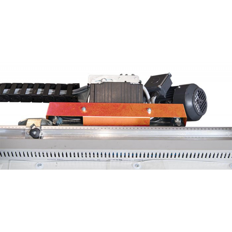 Este echipat cu 4 pistoane pneumatice pentru blocarea materialului, poate taia in ambele sensuri cu viteza reglabila si este dotat cu sistem electromecanic pentru intreruperea taierilor la dimensiunea dorita.