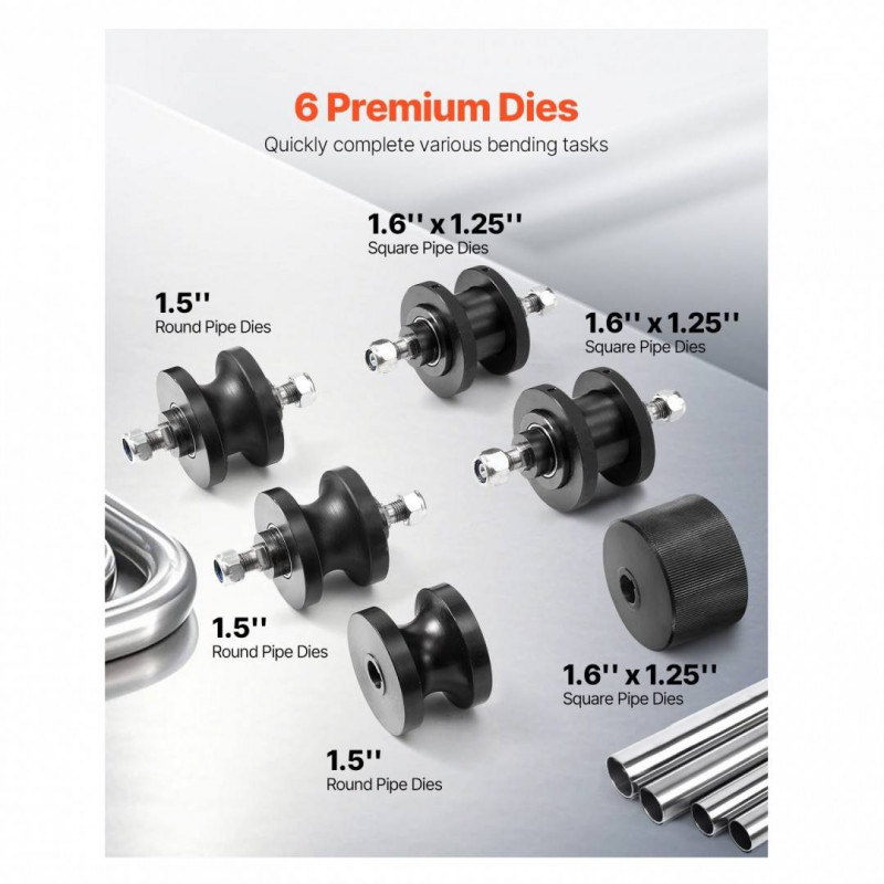 role pentru tevi manuala vine cu 6 matrite de precizie—3 pentru tevi patrate si