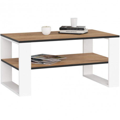 Scurta descriere: Masuta de cafea ALEX in nuanta stejar craft cu picioare albe imbina eleganta naturala cu functionalitatea moderna. Fabricata din PAL melaminat rezistent la zgarieturi si umezeala, asigura durabilitate si intretinere usoara. Blatul spatios si raftul inferior ofera spatiu suplimentar pentru carti, reviste sau accesorii. Designul sau in culori calde si luminoase aduce echilibru si rafinament in orice living, fiind ideala atat pentru interioare moderne, cat si clasice.