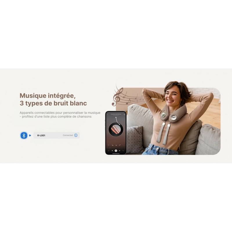 Mini aparatul de masaj pentru gât RENPHO U-Neck de generația a 4-a este dotat cu funcție de redare audio și difuzoare integrate.