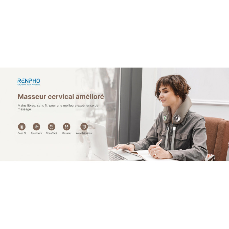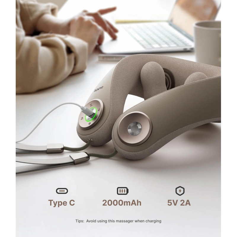 Masajorul pentru gât RENPHO combină presiunea fermă cu cea delicată, pentru a relaxa eficient mușchii încordați.