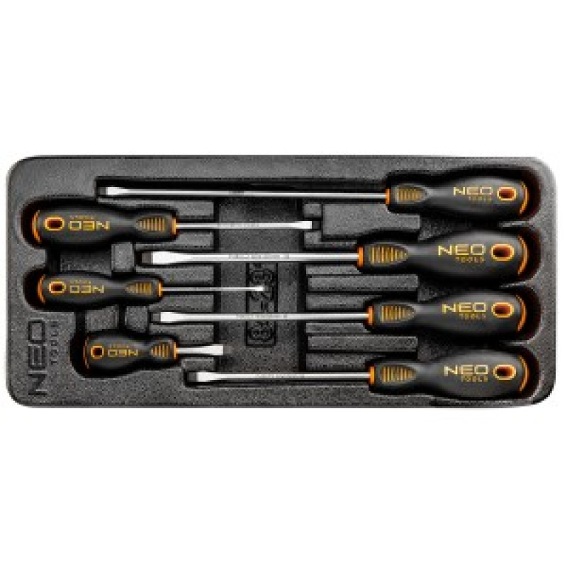 Surubelnite plate Neo (nr ref. 84-231) Varful surubelnitei este fabricat din otel extrem de durabil S2. Varful de lucru a fost supus unui tratament termic, prin aceasta obtinand o duritate si o rezistenta adecvata la incovoiere 56 HRC. surubelnitele au varf magnetic, consolidat. Forma triunghiulara a manerului cu suport conturat pentru degetul mare reduce sarcina pe mana in timpul functionarii si faciliteaza un cuplu optim. Manerul din doua materiale impiedica alunecarea din mana, este rezistent la produse chimice, uleiuri si grasimi. Uneltele sunt furnizate intr-un ambalaj din material plastic practic, potrivit sertarelor pentru scule Neo 84-221 si 84-222. Calitatea instrumentelor este certificata de TÜV si de garantie de 25 de ani a producatorului. Marca Neo indeplineste asteptarile profesionistilor.