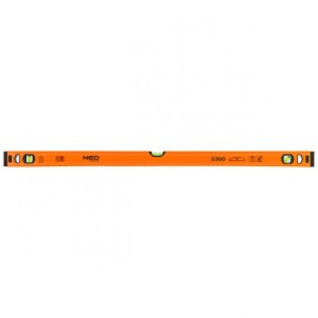Nivela cu bula de aer din aluminiu S 300, 3 flacoane, 100 cm 71-134 de la NEO este un instrument de masurare high-end cu trei flacoane tubulare incorporate (45, 90 si 180 de grade), care utilizeaza forta gravitatiei terestre pentru a determina orizontalitatea sau verticalitatea planurilor in constructii. Modelul oferit are dimensiuni de 51,5x20,5x1000 mm. Acesta are o grosime a profilului de 1 mm. Precizia nivelului este stabilita la 0,029°=0,5 mm/m. Instrumentul este fabricat din aluminiu. Structura este echipata cu 2 capace anti-soc. Recomandata profesionistilor si pasionatilor de bricolaj.