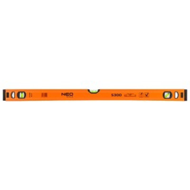 Nivela cu bula de aer din aluminiu S 300, 3 flacoane, 80 cm 71-133 de la NEO este un instrument de masurare high-end cu trei flacoane tubulare incorporate (45, 90 si 180 de grade), care utilizeaza forta de gravitatie a Pamantului pentru a determina orizontalitatea sau verticalitatea planurilor in constructii. Modelul oferit are dimensiuni de 51,5x20,5x800 mm. Acesta are o grosime a profilului de 1 mm. Precizia nivelului este stabilita la 0,029°=0,5 mm/m. Instrumentul este fabricat din aluminiu. Structura este echipata cu 2 capace anti-soc. Recomandata profesionistilor si pasionatilor de bricolaj.