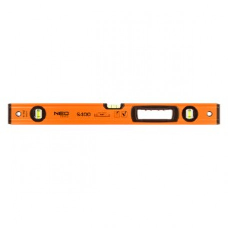 Nivela cu bula de aer din aluminiu S 400, 3 fiole, maner, 60 cm 71-142 de la NEO TOOLS este un instrument de masura de inalta calitate cu trei fiole tubulare incorporate, care utilizeaza forta gravitatiei terestre pentru a determina unghiurile orizontale, verticale sau alte unghiuri ale planurilor in constructii. Modelul oferit are o grosime a profilului de 1,2 mm. Precizia nivelului este stabilita la 0,029°=0,5 mm/m. Instrumentul este fabricat din aluminiu usor, dar durabil. Modelul este echipat cu 2 capace anti-soc si capete cauciucate. Manerul confortabil sta bine in maini. Nivela NEO TOOLS recomandata profesionistilor si pasionatilor de bricolaj.