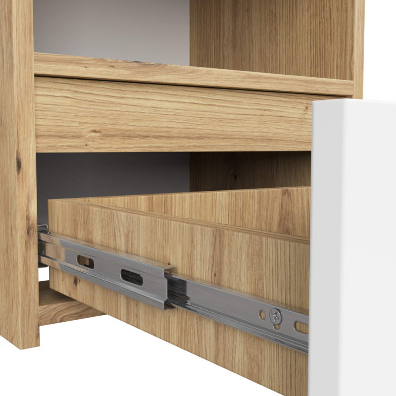 Scurta descriere Comoda CL1 in nuanta stejar artisan cu front alb mat este o piesa moderna si functionala, ideala pentru dormitor sau camera de tineret. Designul sau simplu si elegant aduce un plus de luminozitate si caldura spatiului, oferind in acelasi timp un sertar practic pentru depozitare.