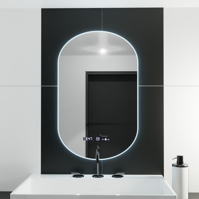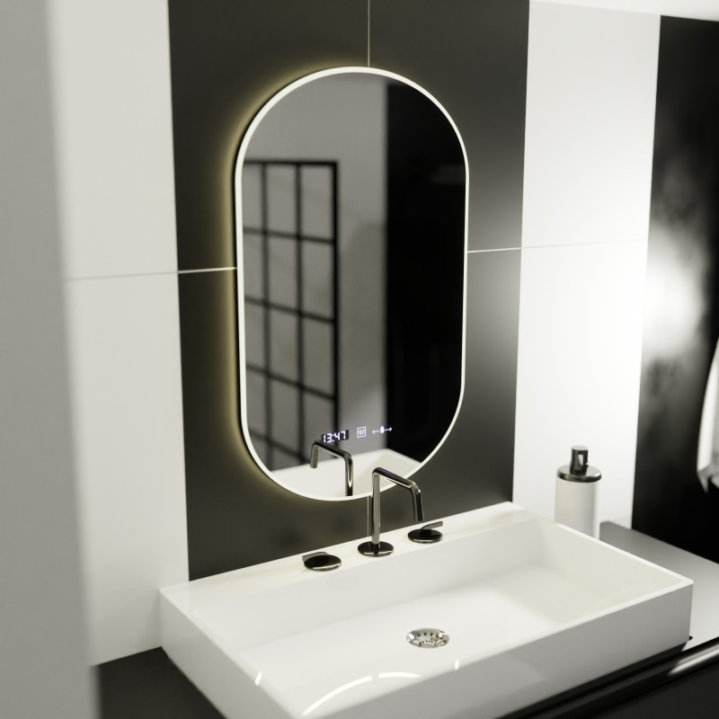 Oglinda LED Ovala 50x80 cm LUCIA - Marcello impresioneaza prin liniile sale fluide si tehnologia discret integrata. Dotata cu senzor de activare, iluminare LED dimabila si functii inteligente precum dezaburirea, ceasul si termometrul digital, LUCIA este alegerea perfecta pentru un spatiu modern, functional si rafinat.