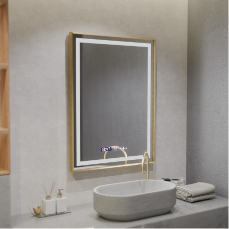Cu linii clare si o rama aurie delicata, Verite Royale Gold adauga o nota de stil sofisticat baii tale, fara sa compromita functionalitatea. Este oglinda ideala pentru cei care isi doresc o piesa statement, dar practica - perfecta atat pentru rutina de dimineata, cat si pentru momentele de relaxare. Iluminarea LED reglabila se adapteaza usor oricarui ambient, fiind activata intuitiv prin senzorul MotionGlow. Functia de dezaburire asigura o vizibilitate impecabila, iar ceasul digital si termometrul integrat completeaza experienta cu informatii utile, mereu la indemana.