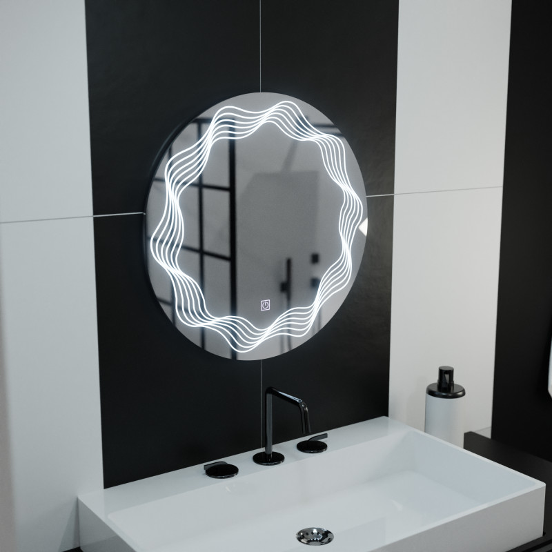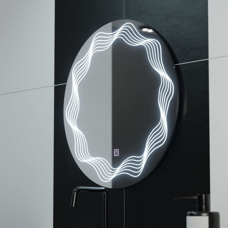 Introdu un element de design fluid si tehnologie moderna in spatiul tau de baie cu oglinda LED Rotunda Flusso Touch. Forma sa circulara eleganta, cu un diametru de 60 cm, aduce o nota de armonie si stil, in timp ce functiile inteligente iti ofera confort si control asupra iluminarii.