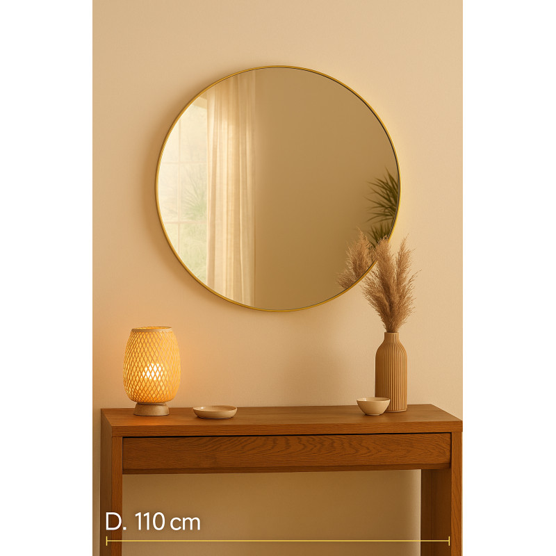 Scurta descriere Oglinda „Alice” cu finisaj auriu este perfecta pentru a adauga o nota sofisticata si luminoasa decorului tau. Rama subtire metalica si forma rotunda creeaza un efect vizual elegant, ideal pentru dormitor, living sau hol.