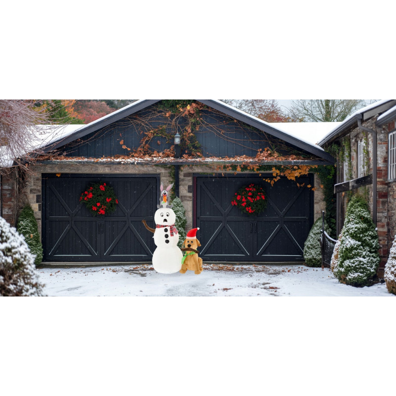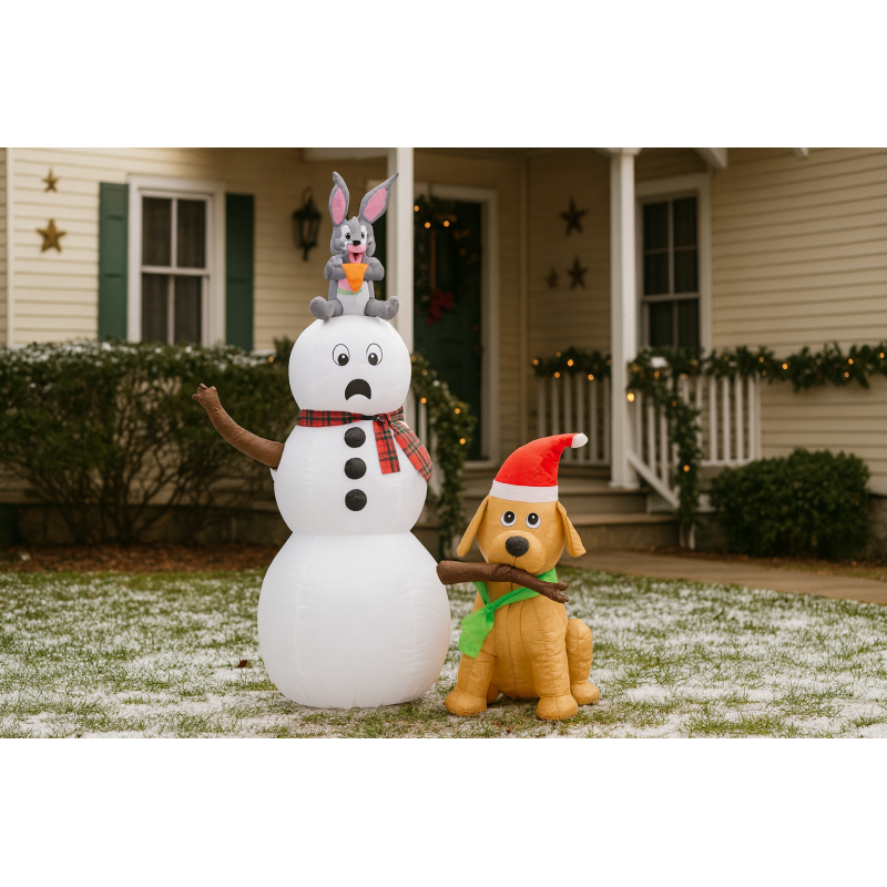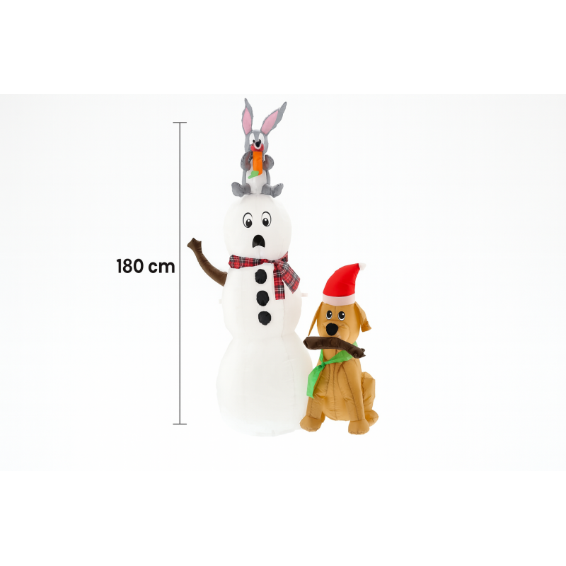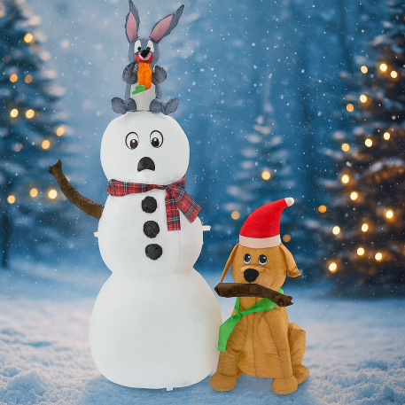 Scurta descriere Om de zapada gonflabil cu catel si iepuras, luminat cu LED, ideal pentru decorurile de Craciun in casa, curte sau gradina. Se monteaza rapid prin conectare la priza, iar materialul rezistent la intemperii ii permite utilizarea in siguranta la exterior.