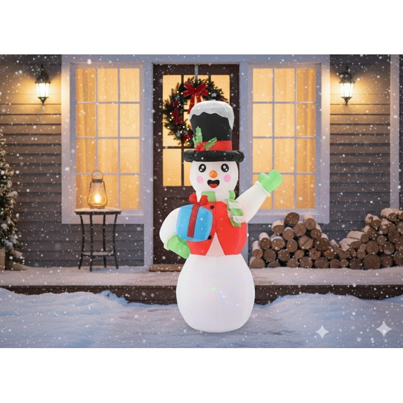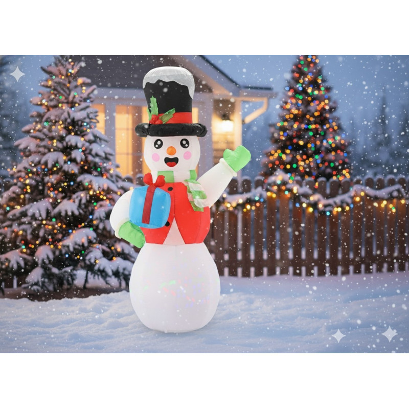 Scurta descriere: Omul de zapada gonflabil de 180 cm cu iluminare LED este ideal pentru decorarea locuintei, gradinii sau spatiilor comerciale. Creeaza o atmosferas festiva placuta si atragatoare, atat pe timp de zi, cat si seara, datorita iluminarii LED integrate.