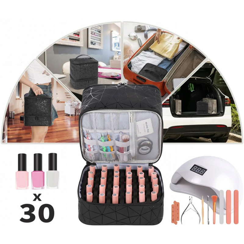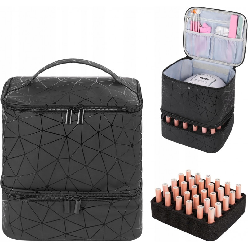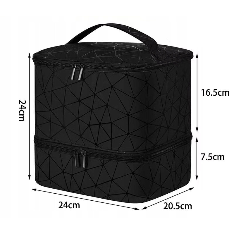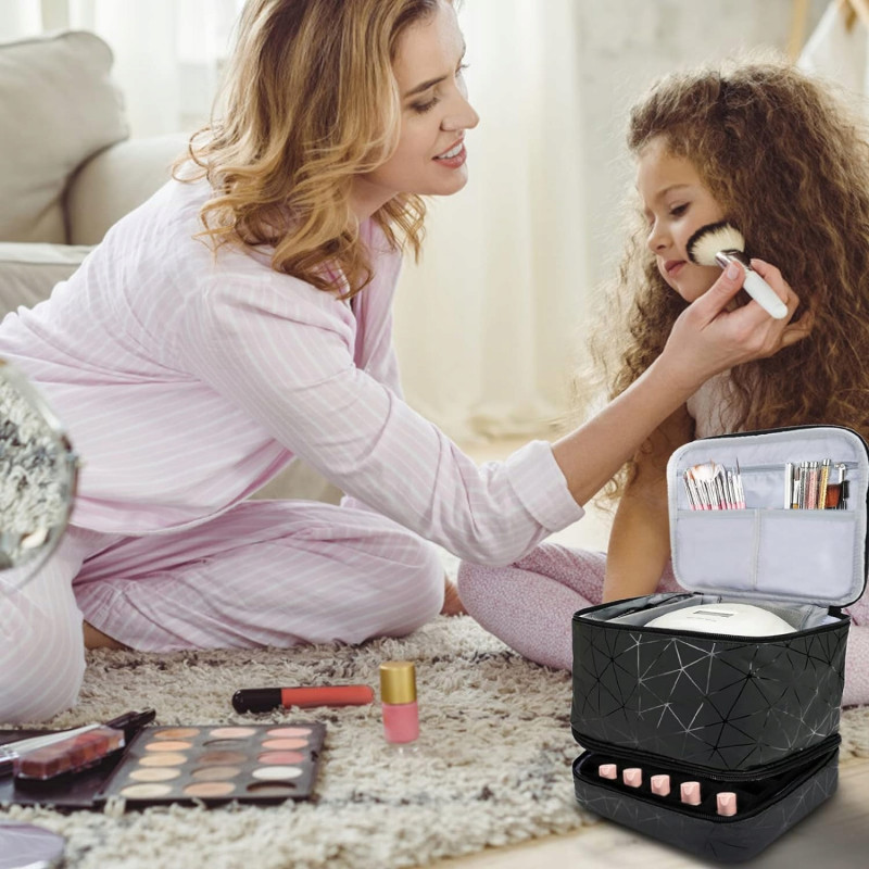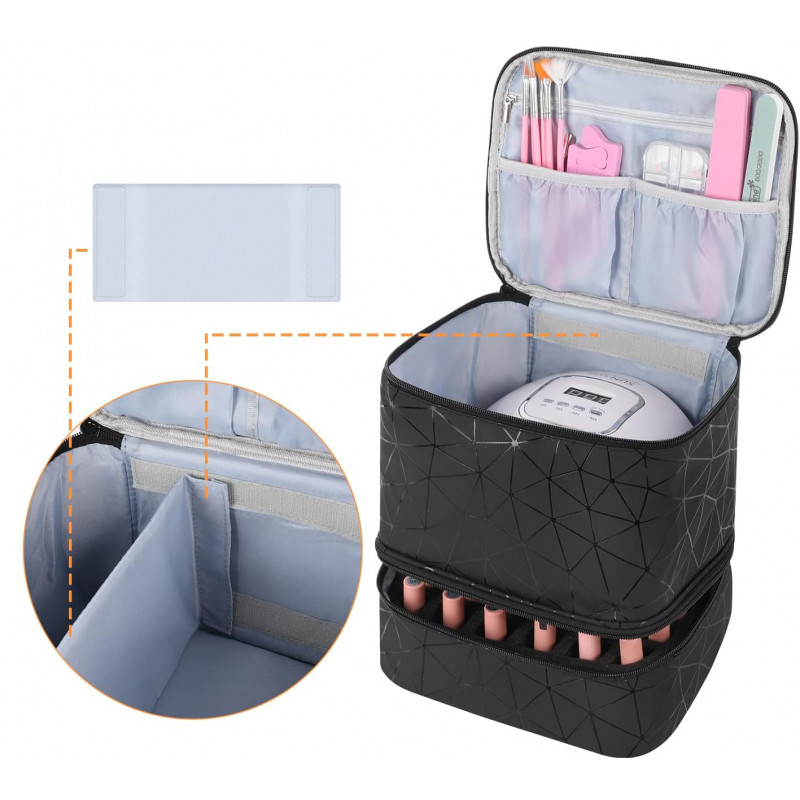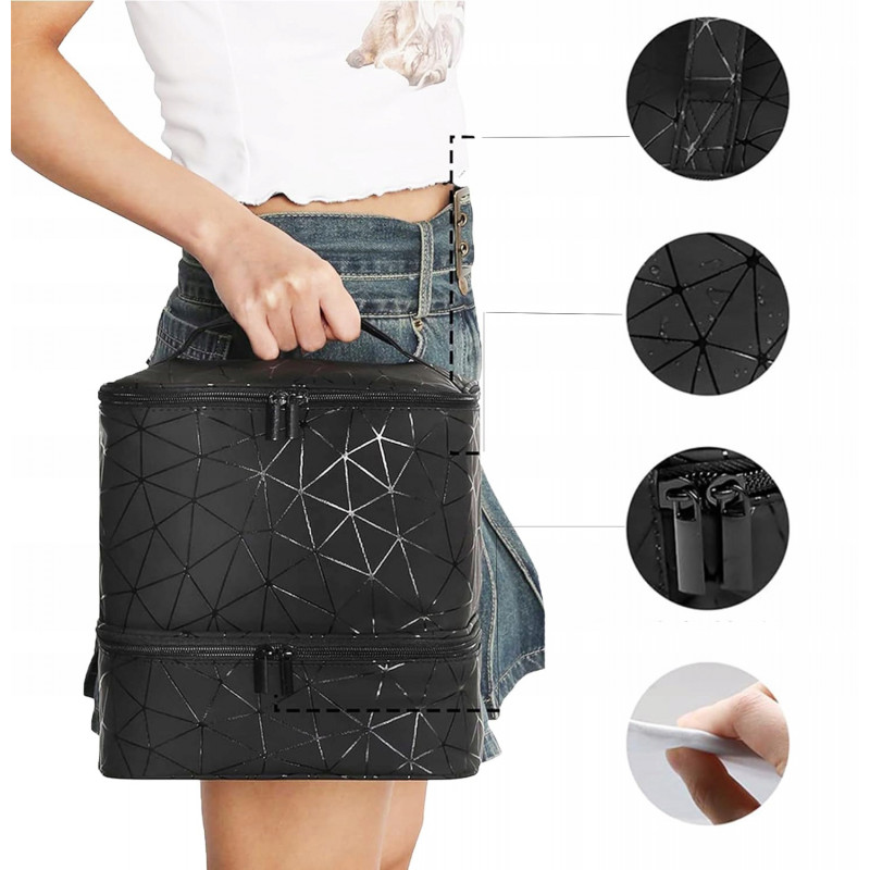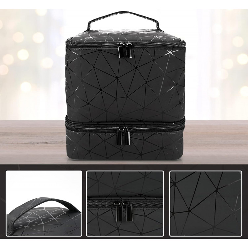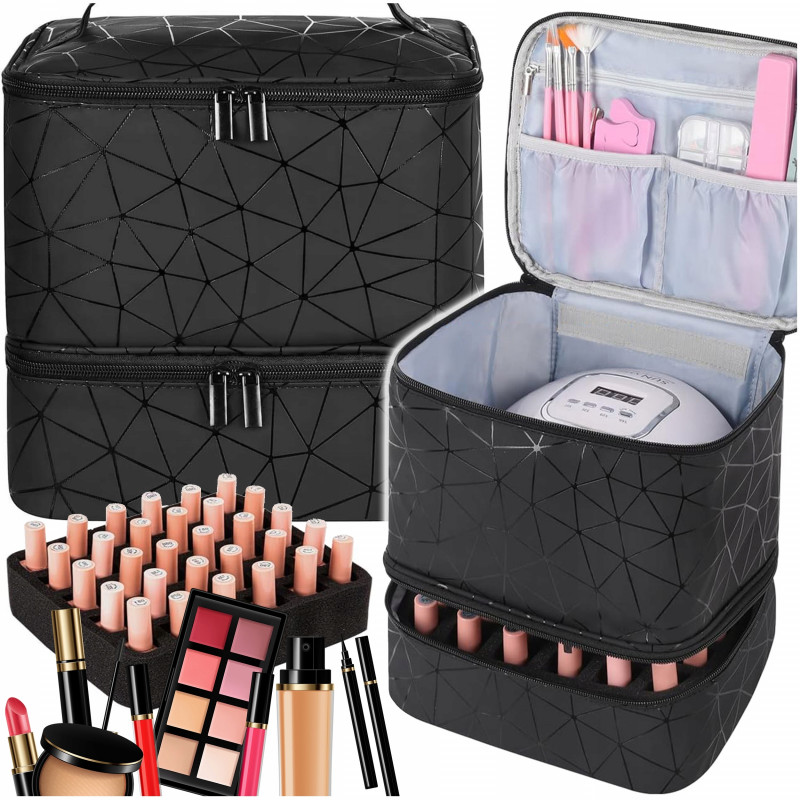Scurta descriere Organizator pentru cosmetice, practic cu doua compartimente, buzunare multiple si grila din burete pentru depozitarea in siguranta a produselor cosmetice si accesoriilor.