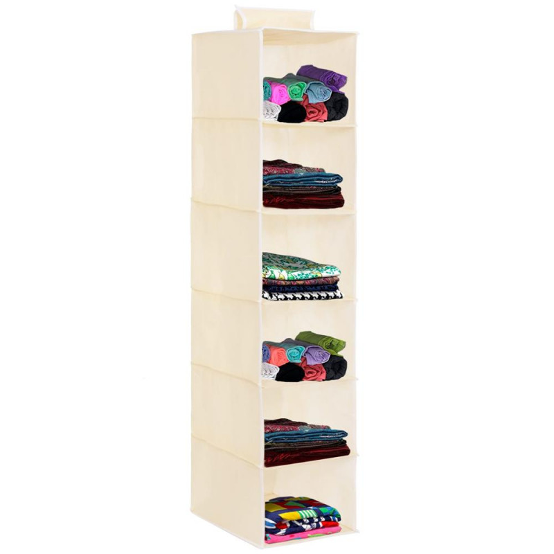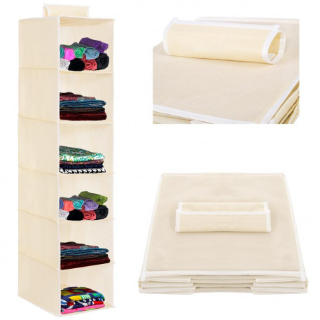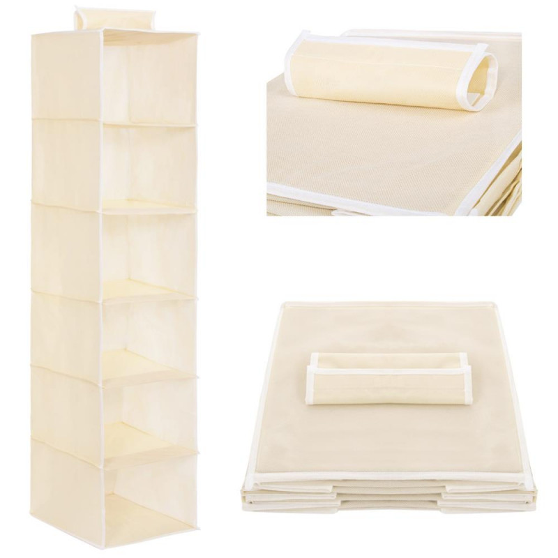 Un organizator suspendat este un element organizatoric excelent intr-un dormitor sau chiar in garderoba unui copil. Bara de agatat din garderoba nu ocupa spatiu, oferind in acelasi timp spatiu pentru depozitarea diverselor articole precum haine, lenjerie de pat, genti sau jucarii. Datorita formei pliabile, este usor de depozitat chiar si atunci cand nu este utilizat in prezent. Produsul este echipat cu compartimente practice in care poti sorta perfect hainele. Datorita organizatorului suspendat, fiecare element isi va gasi locul potrivit. Va fi perfect si pentru un dulap, avand grija de asternuturi, perdele sau alte accesorii. Materialul din fibra din care a fost realizat organizatorul este agatat cu o prindere Velcro. Aceasta functionalitate faciliteaza mutarea organizatorului in alte locuri. Lungimea potrivita il face sa se potriveasca in orice garderoba.