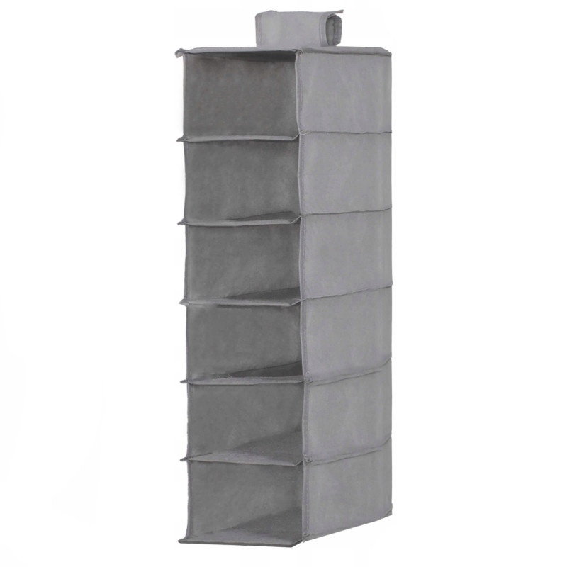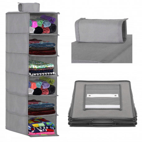 Un organizator suspendat este un element organizatoric excelent intr-un dormitor sau chiar in garderoba unui copil. Bara de agatat din garderoba nu ocupa spatiu, oferind in acelasi timp spatiu pentru depozitarea diverselor articole precum haine, lenjerie de pat, genti sau jucarii. Datorita formei pliabile, este usor de depozitat chiar si atunci cand nu este utilizat in prezent. Produsul este echipat cu compartimente practice in care poti sorta perfect hainele. Datorita organizatorului suspendat, fiecare element isi va gasi locul potrivit. Va fi perfect si pentru un dulap, avand grija de asternuturi, perdele sau alte accesorii. Materialul din fibra din care a fost realizat organizatorul este agatat cu o prindere Velcro. Aceasta functionalitate faciliteaza mutarea organizatorului in alte locuri. Lungimea potrivita il face sa se potriveasca in orice garderoba.