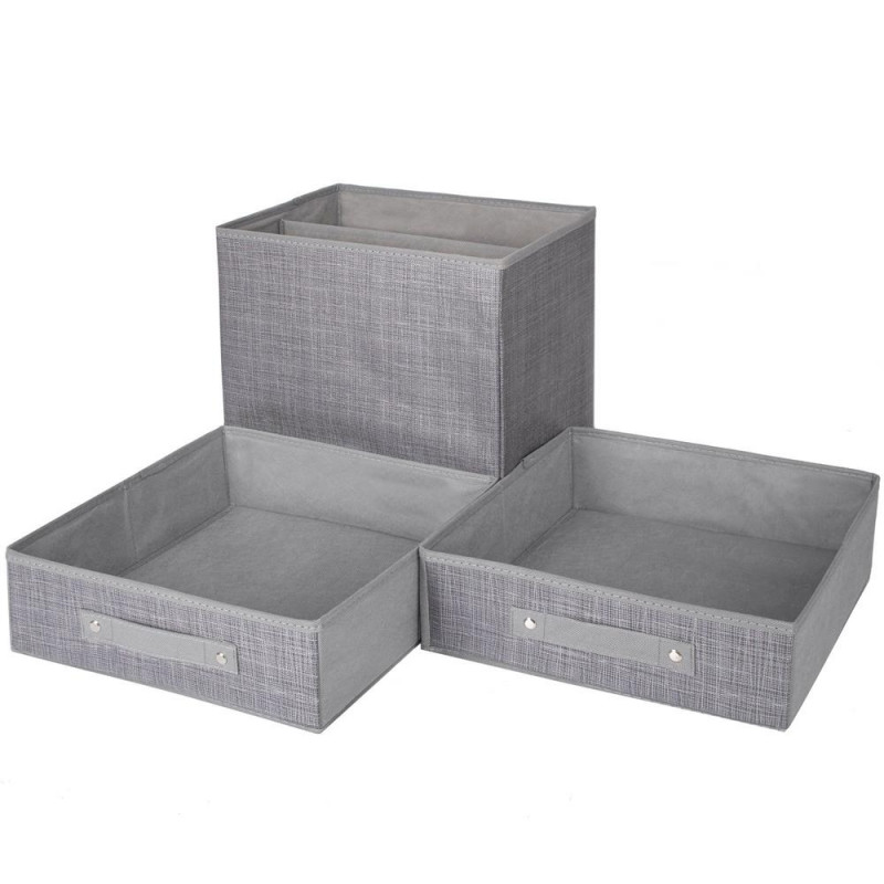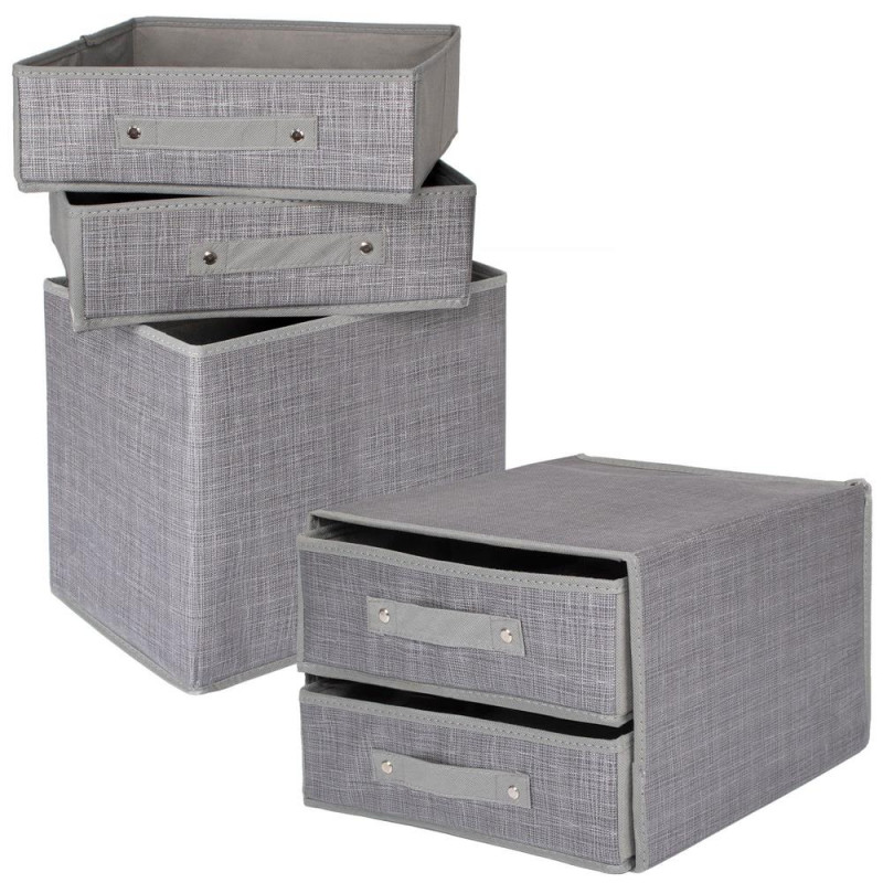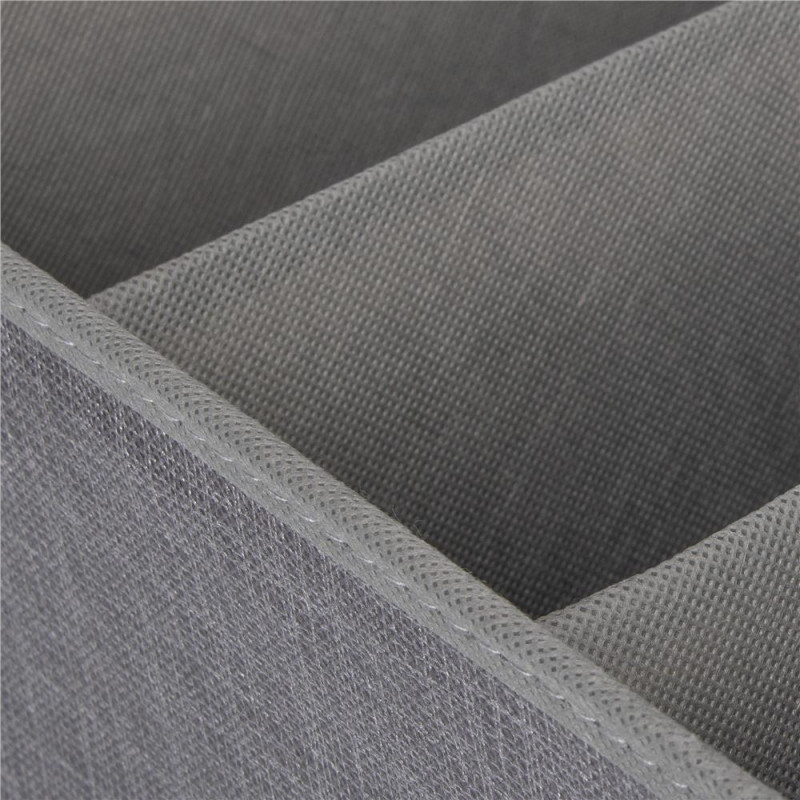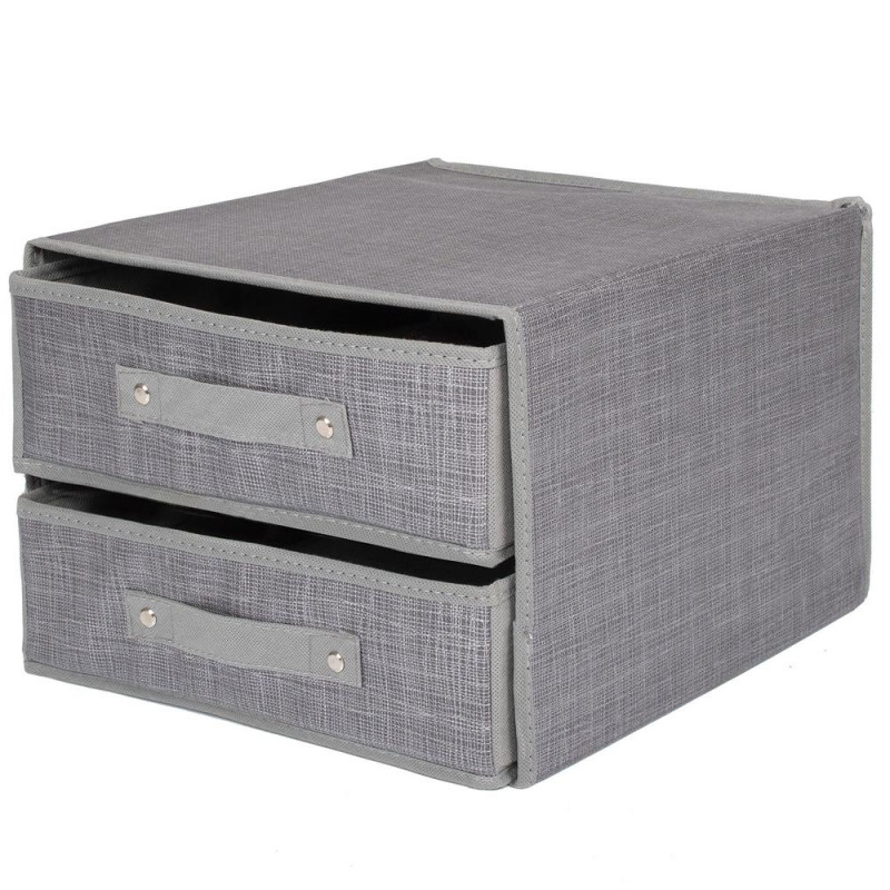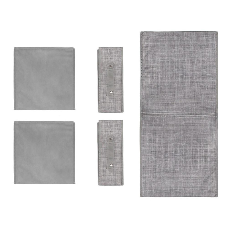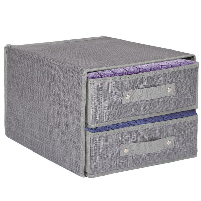 Organizatorul va asigura ca fiecare camera va fi ingrijita si ordonata. Setul este format din 4 cutii diferite care vor avea grija de lenjerie, curele sau sosete. Organizatoarele permit o mai buna gestionare a spatiului in sertare. Datorita acestora, elementele sortate sunt usor de gasit, astfel nu pierzi timpul, de exemplu, in cautarea unui al doilea ciorap. Produsul este fabricat din material netesut rezistent. Peretii laterali rigidizati ai organizatorului fac structura stabila si impiedica indoirea. Culorile clasice se vor potrivi frumos in orice dulap si garderoba. Organizatoarele sunt foarte usoare de desfasurat si pliat. In plus, datorita structurii lor usoare, sunt usor de mutat in alte locuri.Setul include doua organizatoare. O astfel de diviziune permite selectarea diferitelor elemente, cum ar fi bijuterii sau lenjerie intima. Sunt perfecte pentru camera unui copil pentru a sorta jucariile mici sub forma de figurine sau accesorii din plastic. Pot fi folosite si pentru depozitarea produselor cosmetice in baie sau a lenjeriei in dressing. Parametri :culoarea gri