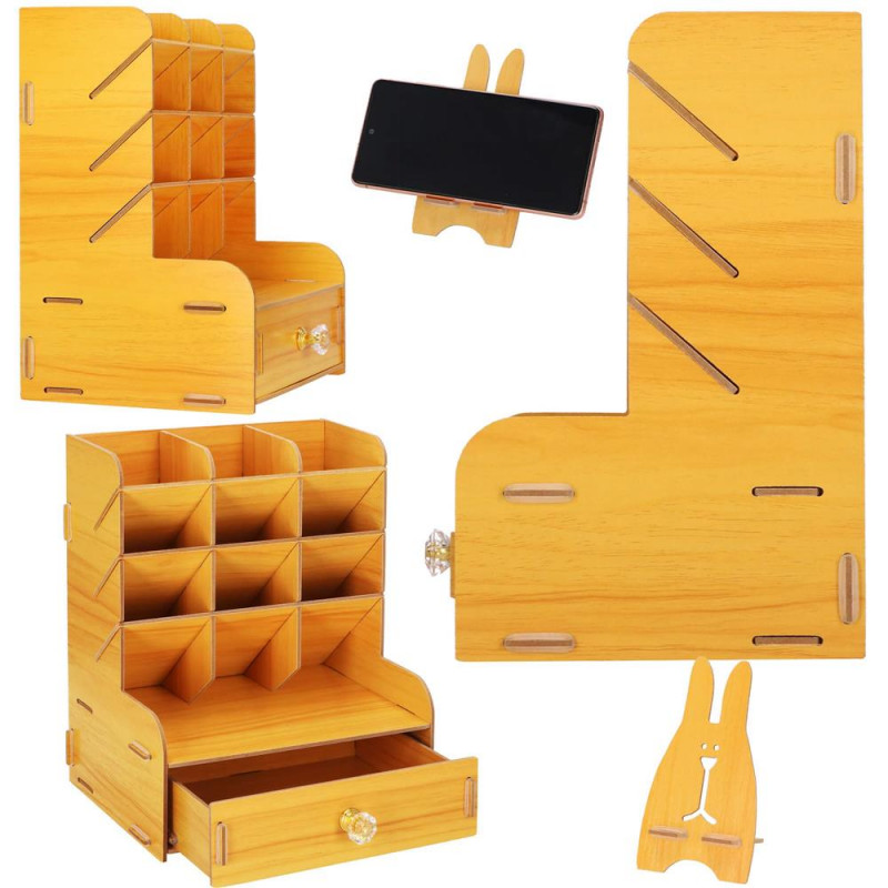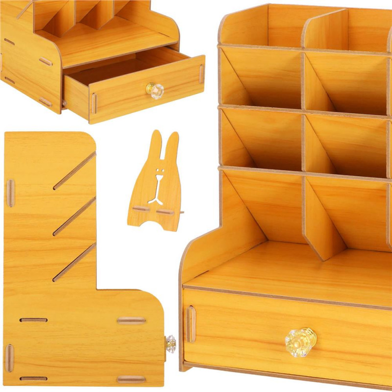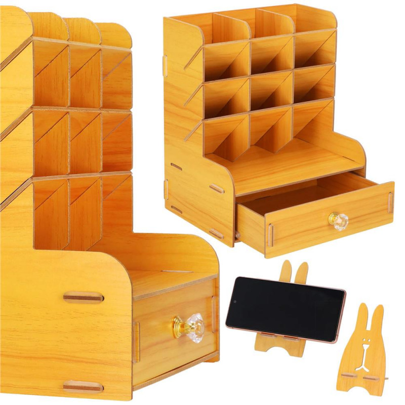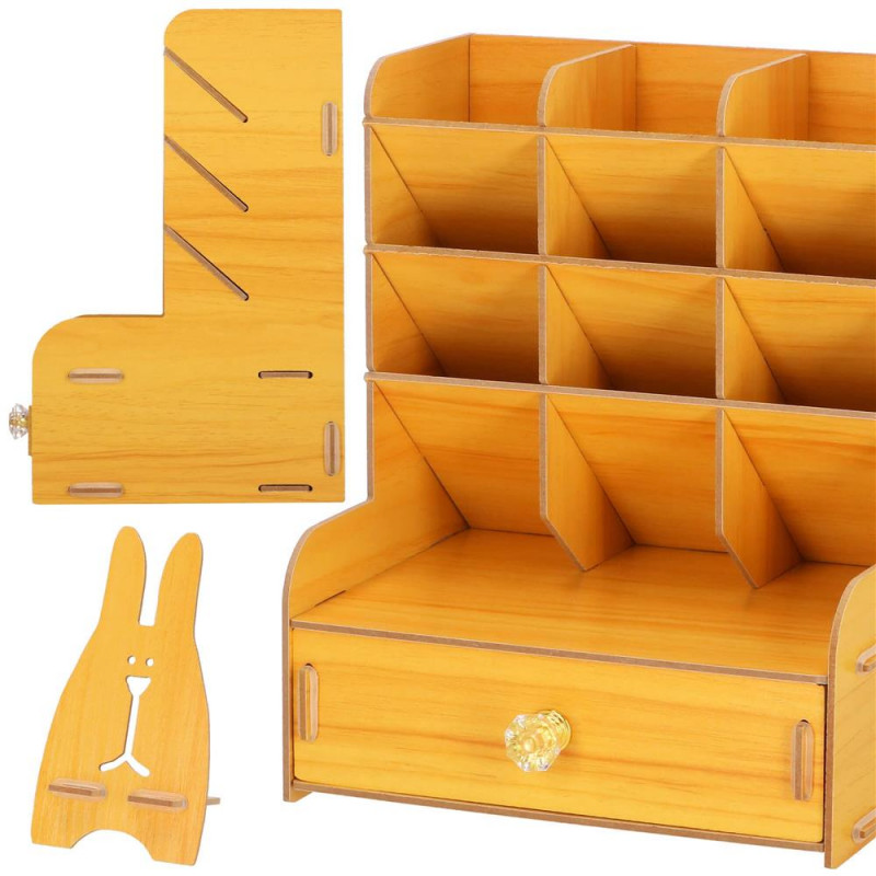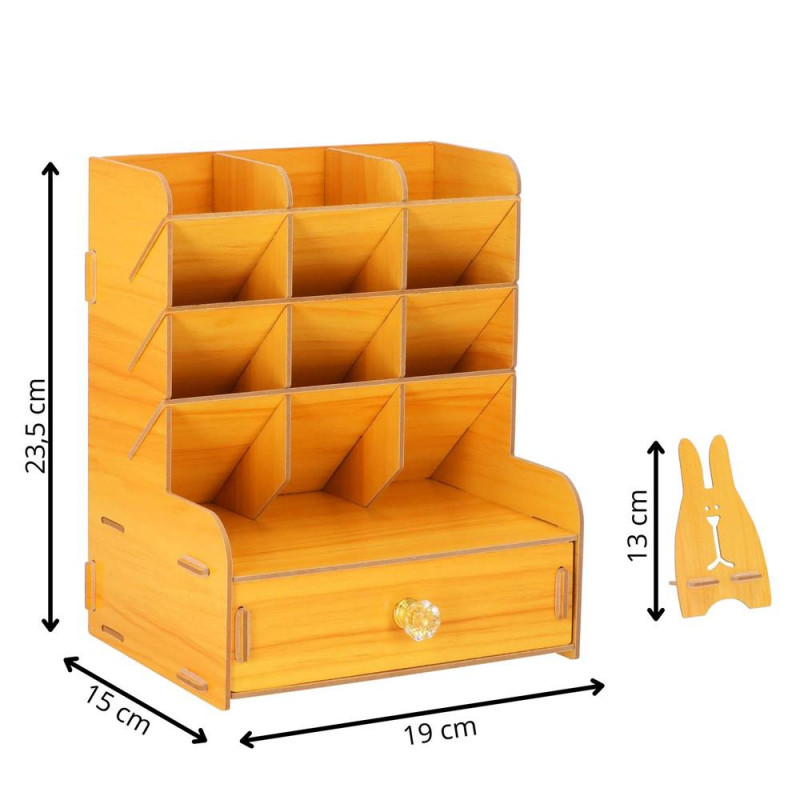 Gratuit : suport mic pentru telefon in forma de iepuras Materialul solid din care este confectionat organizatorul garanteaza durabilitatea. Organizatorul are 9 compartimente, precum si un raft si un sertar extensibil pe care le poti folosi in mod inteligent. Celulele individuale sunt foarte incapatoare. Un numar mare de compartimente va va permite sa plasati ustensile de scris sau de pictat, cum ar fi pixuri, creioane sau markere, precum si obiecte mici - foarfece, note lipicioase, agrafe sau capse. Sarcina principala a acestui tip de cutie de instrumente este, desigur, de a mentine in ordine articolele de birou. Organizatorul va va permite sa gasiti rapid instrumentul dorit. Produsul vine cu un suport gratuit, stabil in forma de iepuras, pentru telefon sau notebook! Merge perfect cu cutia de instrumente! Puteti asambla produsul rapid si usor datorita