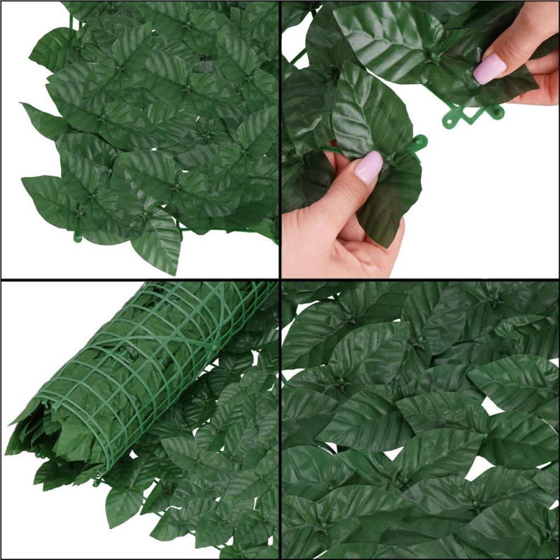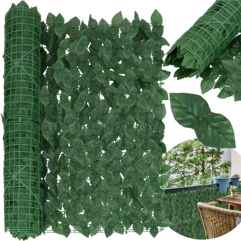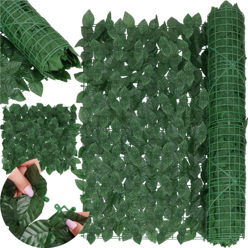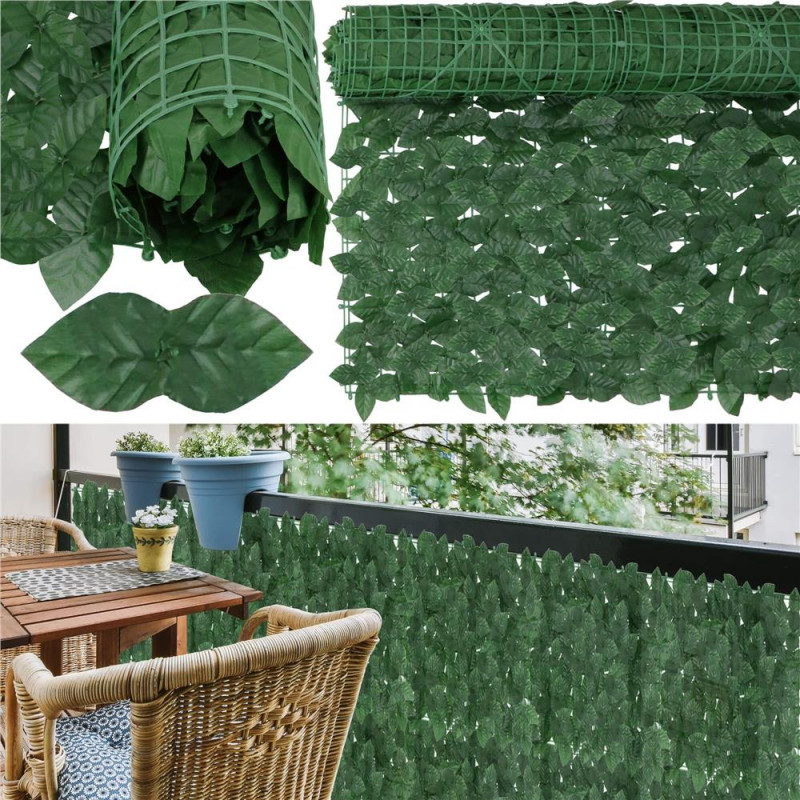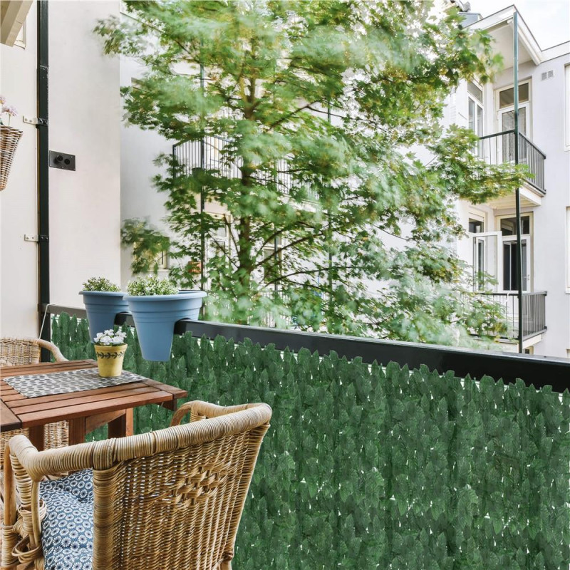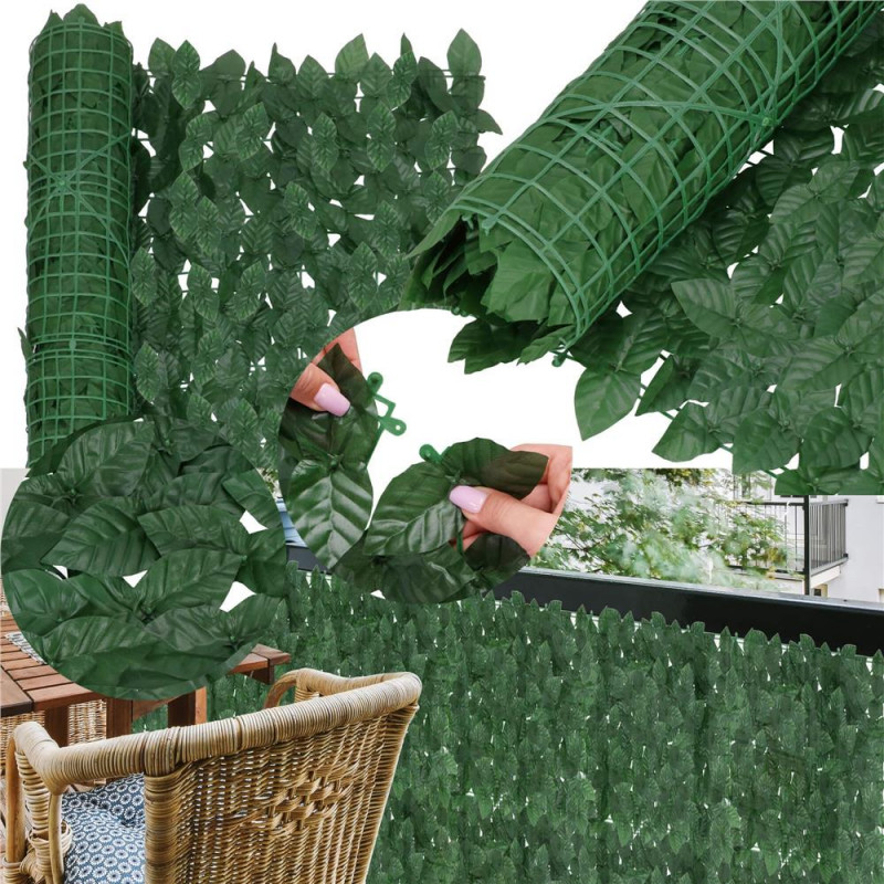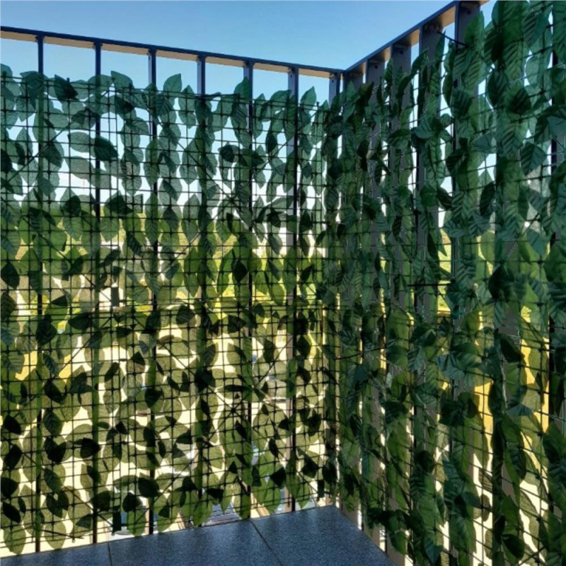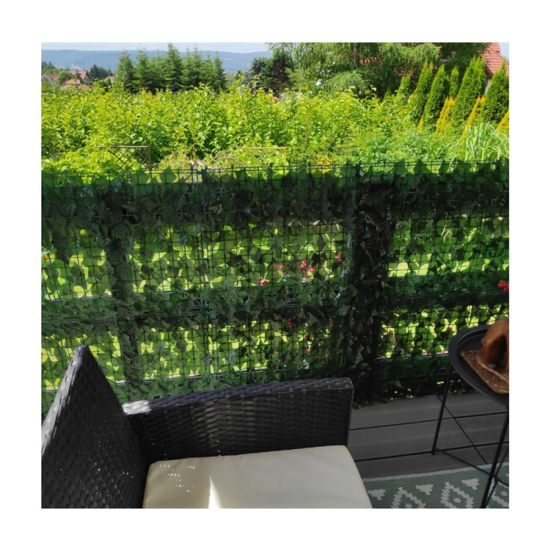 Grila: 4,5 x 3,5 cm Husa de balcon este realizata din plastic rezistent si durabil. Frunzele sunt dens distantate, ceea ce garanteaza umbrire ridicata, viata prelungita si rezistenta la conditiile meteorologice, inclusiv la lumina soarelui. Aspectul natural al husei o face sa se potriveasca discret in orice amenajare de gradina si balcon. Un perete verde de frunze arata foarte estetic si completeaza perfect decorul unui balcon sau al unei terase, combinandu-se perfect cu plantele vii in ghiveci.