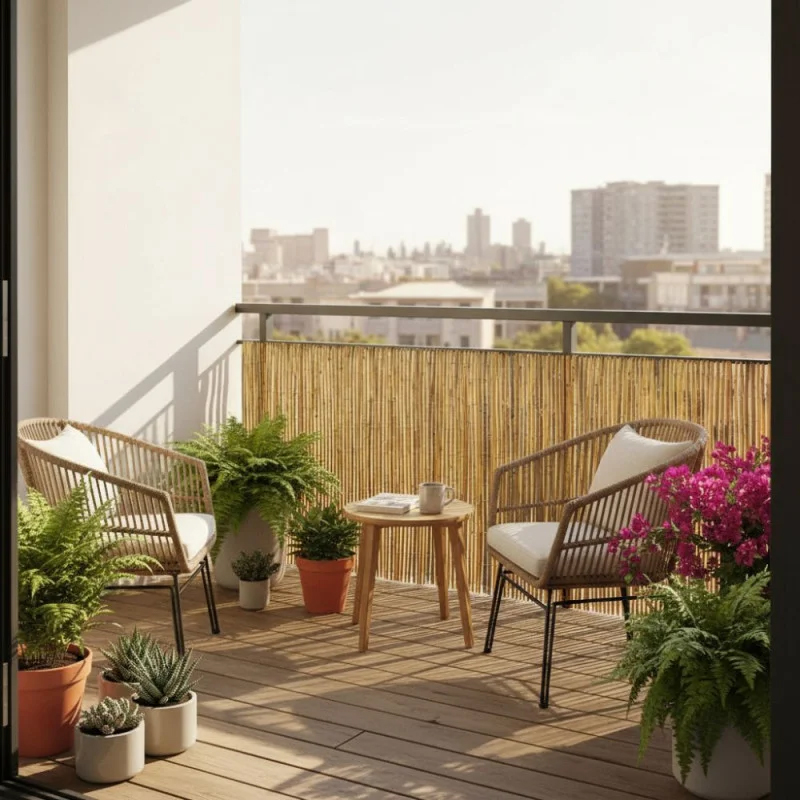 - Aspect natural din bambus potrivit pentru orice spatiu exterior