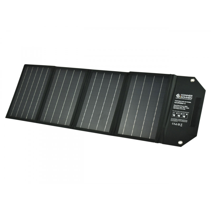 Încărcătorul portabil cu panouri solare KS SP28W-4 de la marca germană Könner & Söhnen este util pentru încărcarea dispozitivelor în timpul activităților în aer liber, drumeții lungi și toate aplicațiile în zonele expuse la lumina soarelui. Acest încărcător cu panou solar este potrivit pentru încărcarea telefoanelor mobile, tabletelor, GPS-ului, băncilor de alimentare și a altor dispozitive. Elementele monocristaline de înaltă calitate ale panoului solar asigură o rată ridicată de conversie a energiei luminoase în energie electrică și o durată lungă de viață. Încărcați-vă dispozitivele rapid cu energie solară nelimitată, curată și gratuită.