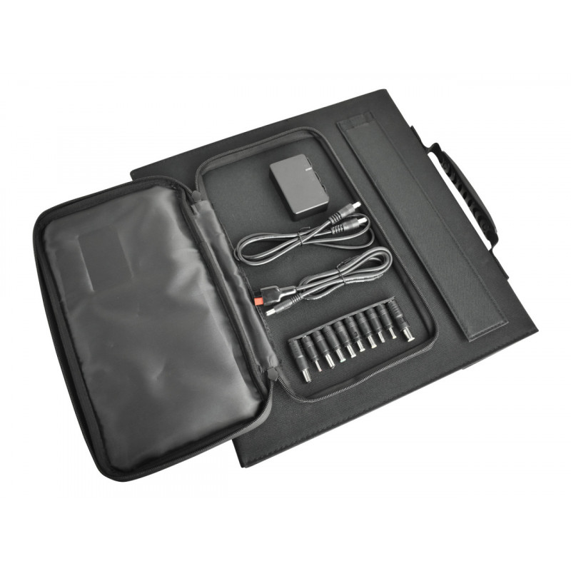 Designul pliabil extrem de compact permite transportul ușor cu o singură mână. Dispozitivul are două orificii cu ochiuri pe colțuri permițând atașarea ușoară la rucsacuri, copaci sau corturi cu carabiniere. Dispozitivele care trebuie încărcate se potrivesc în buzunarul cu fermoar, păstrându-le în siguranță și curate. Capacitatea de a funcționa într-o stare parțial desfășurată permite încărcătorul cu panou solar să fie utilizat în spații închise sau în mișcare.