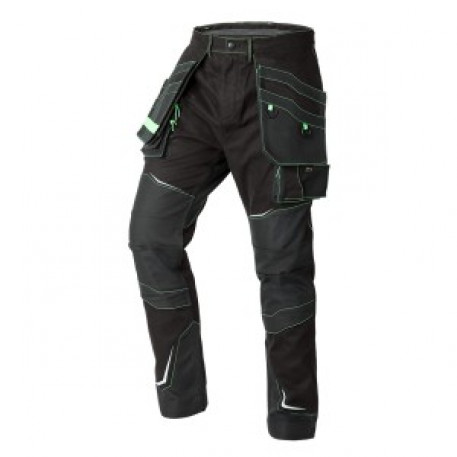 Pantalonii de lucru Premium PRO, marimea M, 81-234-M de la NEO TOOLS sunt confectionati din Canvas 100% bumbac cu o greutate de 425 g/m2 si intariti cu Cordura NYCO 75% bumbac, 25% nailon, cu o greutate de 272 g/m2 pe buzunare, genunchi, spate si partea inferioara a picioarelor. Pantalonii sunt negri cu o culoare verde neon contrastanta pe cusaturi. Sunt prevazuti cu fermoare YKK si imprimeuri reflectorizante 3M. Au cusaturi triplu cusute. Sunt caracterizati de pana la 18 buzunare: 3 cu fermoar, 4 cu inchizatoare magnetice, buzunare detasabile cu 7 compartimente, precum si carlige pentru unelte si un buzunar de identificare. Genunchii si picioarele profilate sunt intarite cu NYCO Cordura cu posibilitatea de a extinde pantalonii cu pana la 4 cm. in interior, exista o curea de cauciuc cusuta cu un imprimeu anti-alunecare si un fermoar suplimentar, ceea ce face posibila combinarea acestora cu un hanorac din serie intr-un costum. Exista, de asemenea, o ventilatie acoperita cu fermoar la partea din spate a picioarelor. Eticheta de identificare, la randul sau, faciliteaza identificarea la locul de munca, iar logo-ul de pe bucla extinsa a centurii asigura calitatea ridicata a produsului. Marca NEO TOOLS este recomandata profesionistilor si pasionatilor de bricolaj. Pantalonii Premium PRO sunt certificati CE. Se vor dovedi utili pentru sarcini solicitante in industrii precum: constructii, industrie, transport, logistica si agricultura sau silvicultura.