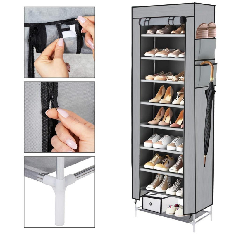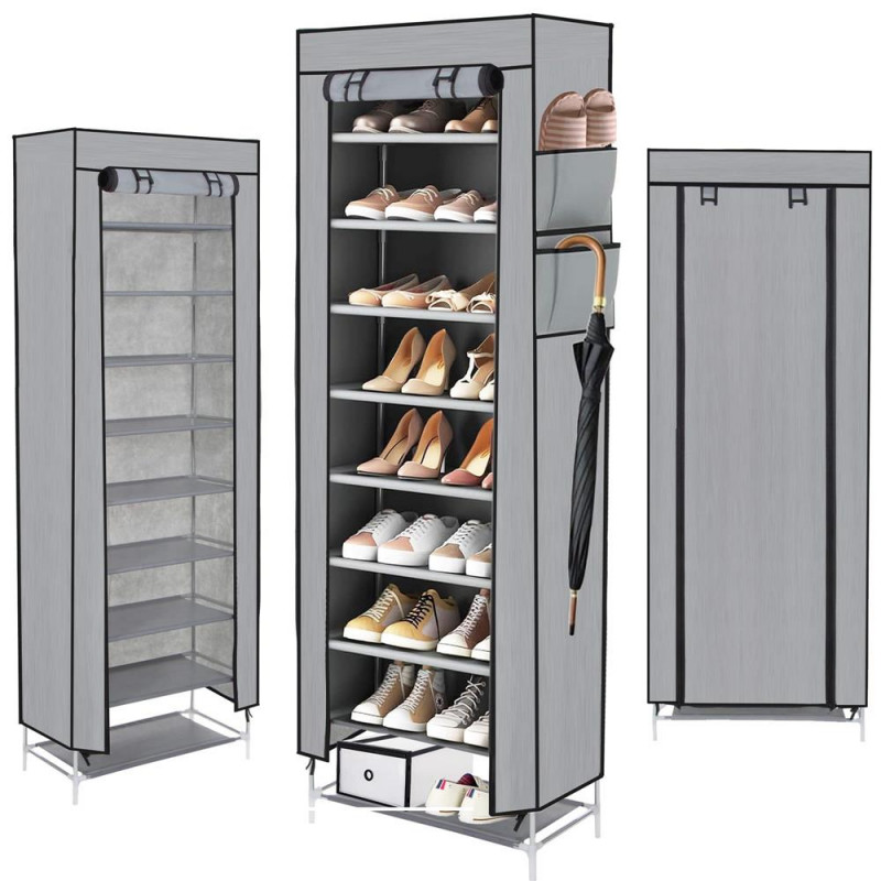 Asamblare: produs care se asambleaza singur Suportul pentru pantofi este realizat din material solid, este o solutie de neinlocuit pentru oricine pretuieste ordinea si eleganta in depozitarea pantofilor. Proiectat pentru o functionalitate maxima, suportul ofera pana la noua niveluri, oferind suficient spatiu pentru a depozita pantofii intr-un loc compact. Invelisul textil va proteja pantofii de praf si lumina, ceea ce poate fi deosebit de important pentru materialele delicate sau pentru pantofii folositi ocazional.