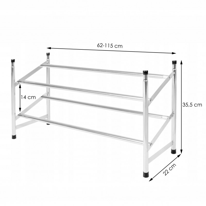 Sarcina totala maxima: 10 kg Raftul extensibil pentru pantofi te va ajuta sa amenajezi corect holul sau camera de zi. Cu ajutorul acestuia, nu va trebui sa va faceti griji cu privire la pantofii imprastiati in jurul usii de iesire. Latimea reglabila il face sa se potriveasca in multe locuri din casa. Un raft cu doua niveluri va gazdui multe perechi de pantofi. Structura stabila este realizata din materiale de cea mai buna calitate pentru a se asigura ca poate fi folosita o perioada lunga de timp.Suportul pentru pantofi este usor si la indemana. Ii poti schimba rapid locul. In plus, plierea si desfacerea acestuia este extrem de usoara. Acest suport pentru pantofi va permite sa plasati diferite tipuri de incaltaminte pe el. Spatiul mare dintre rafturi iti va permite sa asezi atat adidasi, sandale sau chiar cizme pe raftul de sus.