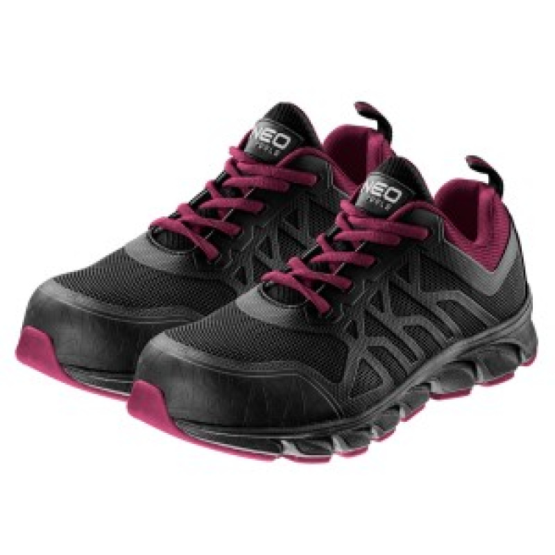 Cizmele de lucru pentru femei NEO 82-530 NEO clasa S1 PS SR FO protejeaza piciorul de frig, inmuiere si inmuiere in apa. incaltamintea este foarte confortabila, nu contine elemente metalice ceea ce face pantofii mai usori si nedetectabili la portile de detectare a metalelor. Talpa antiderapanta cu sistem de absorbtie a socurilor, rezistenta la abraziune, ulei, benzina si alti solventi organici, precum si varful din fibra de sticla care poate rezista la un impact de pana la 200J, talpa antiperforare din Kevlar nu sunt toate avantajele acestui produs. Pantofii sunt usori si au un design la moda si sunt certificati CE, in conformitate cu EN:ISO 20345:2022