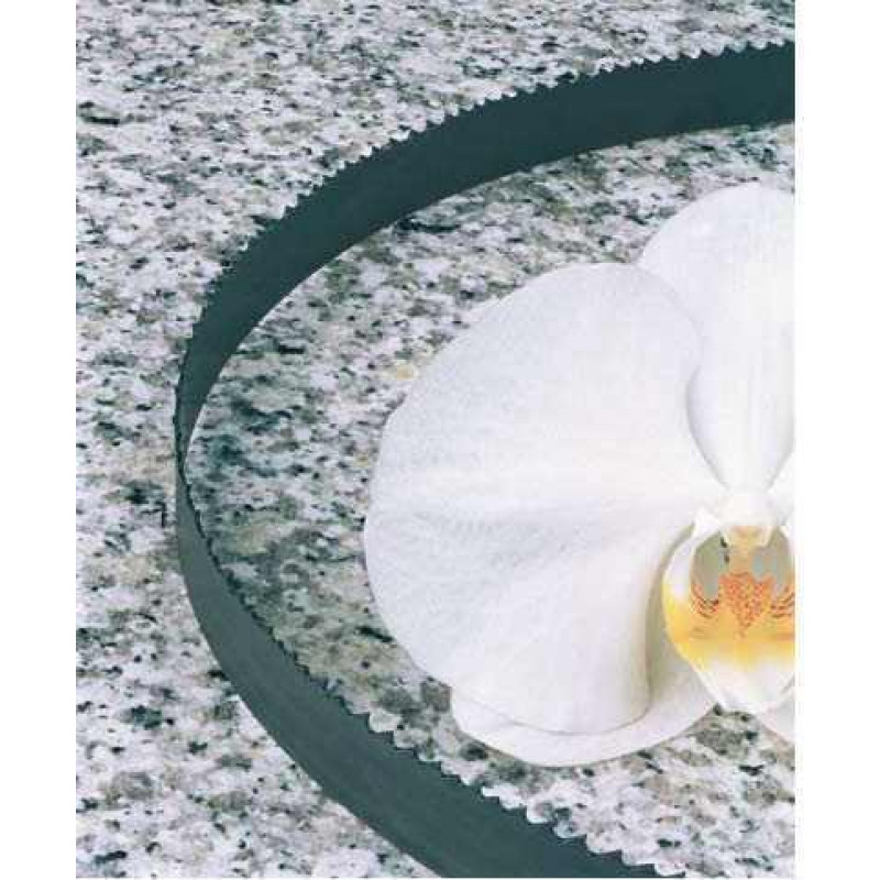 Pânză bimetalică de ferăstrău-panglică cu întăritură din aliaj puternic de crom ~ 4% şi tăiş din HSS M42 / material nr. 1.3247 cu conţinut de cobalt 8%. Duritatea dinţilor de aproximativ 68 HRc şi întăritura cu rezistenţă ridicată la oboseala prin îndoire reprezintă combinaţia ideală pentru tăierea tuturor categoriilor obişnuite de oţel, până la aproximativ 45 HRc.