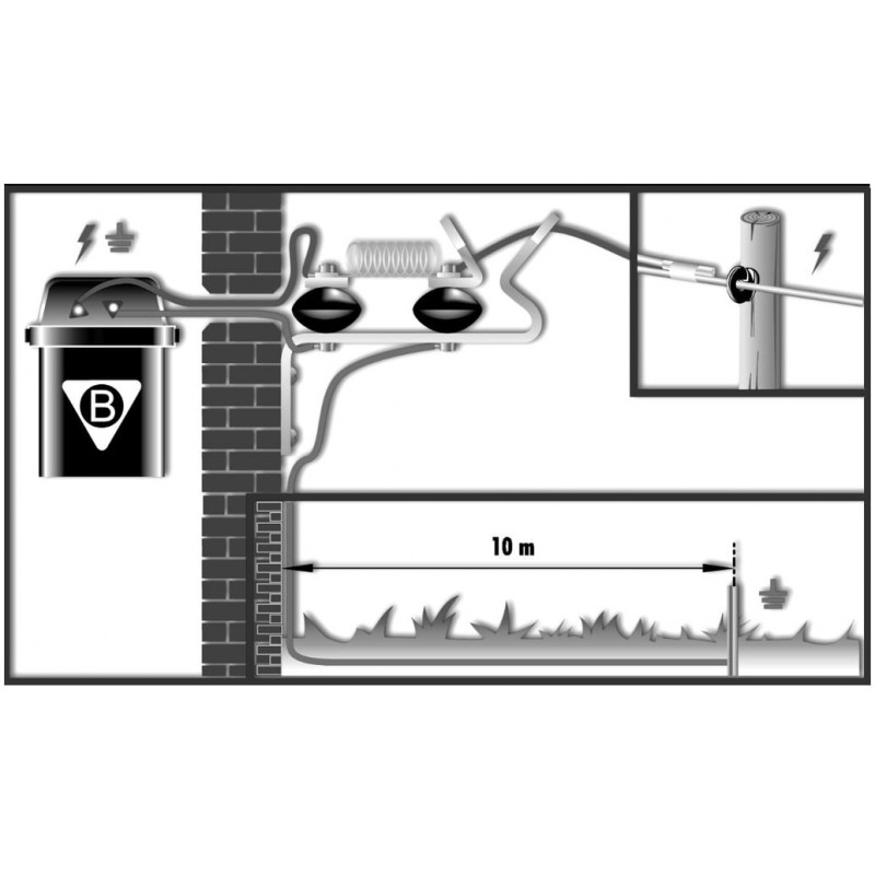 Descarcarea fulgerului are loc in sol, in acest fel scade riscul distrugerii aparatului de gard electric.