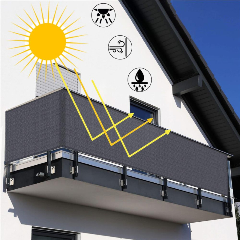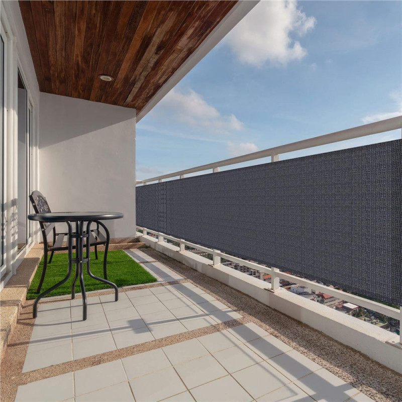 Cu aceasta prelata de balcon din HDPE, va puteti bucura de intimitate in timp ce va relaxati sau stati la soare pe balcon.Acest umbrar de balcon, fabricat din HDPE (polietilena de inalta densitate), este rezistent la mucegai si raze UV.Structura speciala „deschisa” a tesaturii permite trecerea fluxului de aer, astfel incat sa va puteti bucura oricand de o adiere proaspata pe balcon.Paravanul de protectie poate fi atasat cu usurinta la balcon, cu ochetii din aluminiu si sfoara inclusa.Culoare gri inchis