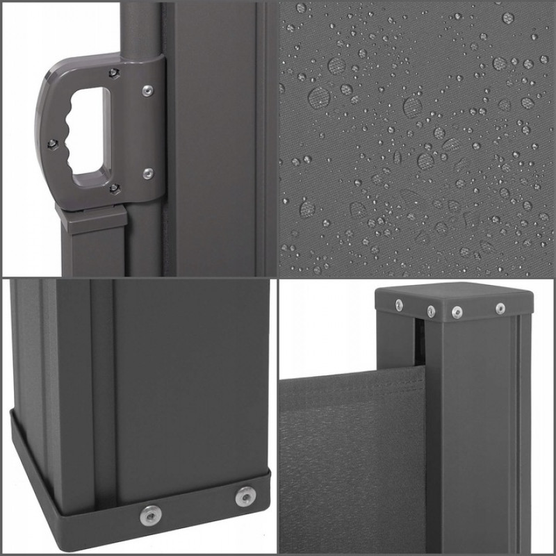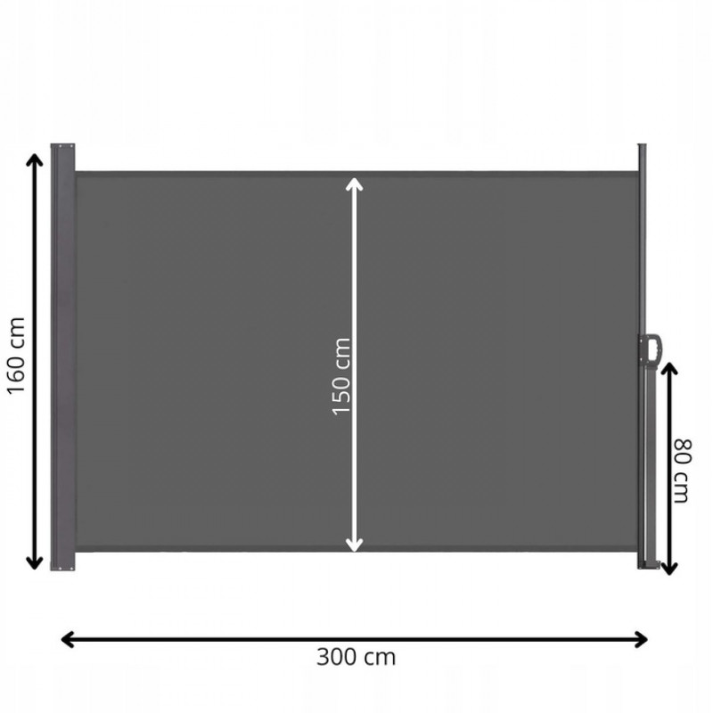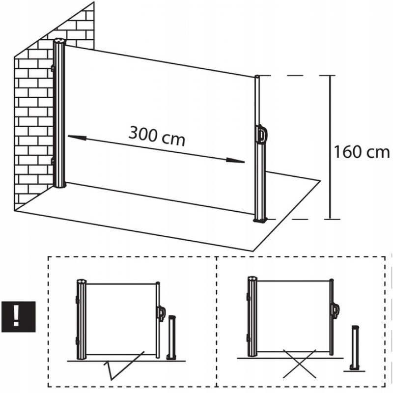instructiunile de asamblare sunt incluse Cortina laterala ofera o protectie confortabila impotriva razelor soarelui si a rafalelor de vant, este potrivita pe terasa, balcon sau gradina.Posibilitatea de a monta suportul in pozitia dorita va permite sa ajustati cu usurinta lungimea marchizei pentru a se potrivi nevoilor dumneavoastra. Lungimea maxima a marchizei este de 300 cm, astfel incat, indiferent daca este vorba de un balcon, o terasa sau o gradina, puteti acoperi cu usurinta o suprafata convenabila.Cadrul copertinei este fabricat din otel solid, asigurand rezistenta la conditiile meteorologice schimbatoare. In plus, finisajul acoperit cu pulbere garanteaza o protectie impotriva ruginii si a coroziunii rapide. Datorita constructiei solide a cadrului, marchiza ofera stabilitate, ceea ce permite o utilizare sigura.Kitul este livrat cu