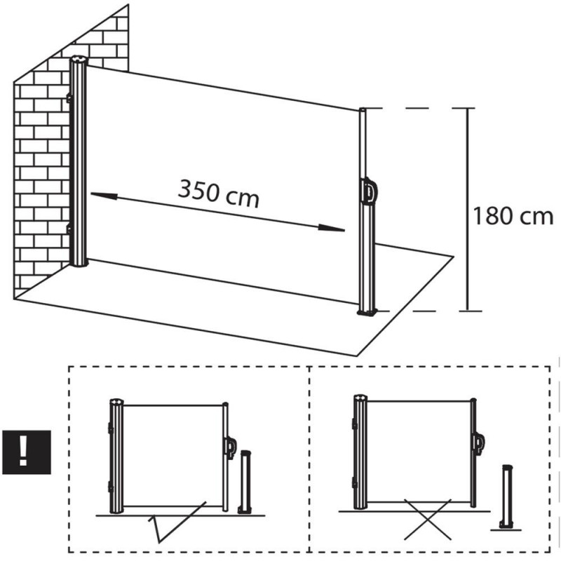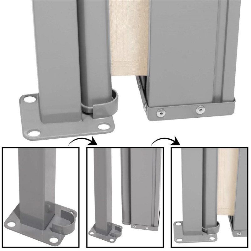 Dimensiunile bazei stalpului: 8 x 9 cm, grosime: 3,5 mm Cortina laterala ofera o protectie confortabila impotriva razelor soarelui si a rafalelor de vant, este potrivita pe terasa, balcon sau gradina.Posibilitatea de a monta suportul in pozitia dorita va permite sa ajustati cu usurinta lungimea marchizei pentru a se potrivi nevoilor dumneavoastra. Lungimea maxima a marchizei este de 300 cm, astfel incat, indiferent daca este vorba de un balcon, o terasa sau o gradina, puteti acoperi cu usurinta o suprafata convenabila.Cadrul copertinei este fabricat din otel solid, asigurand rezistenta la conditiile meteorologice schimbatoare. In plus, finisajul acoperit cu pulbere garanteaza o protectie impotriva ruginii si a coroziunii rapide. Datorita constructiei solide a cadrului, marchiza ofera stabilitate, ceea ce permite o utilizare sigura.Kitul este livrat cu