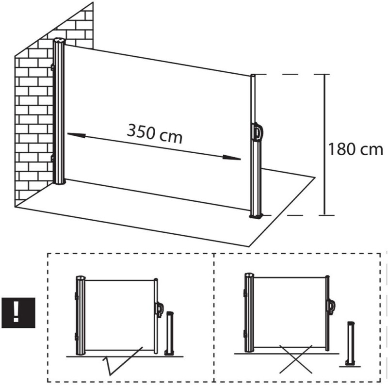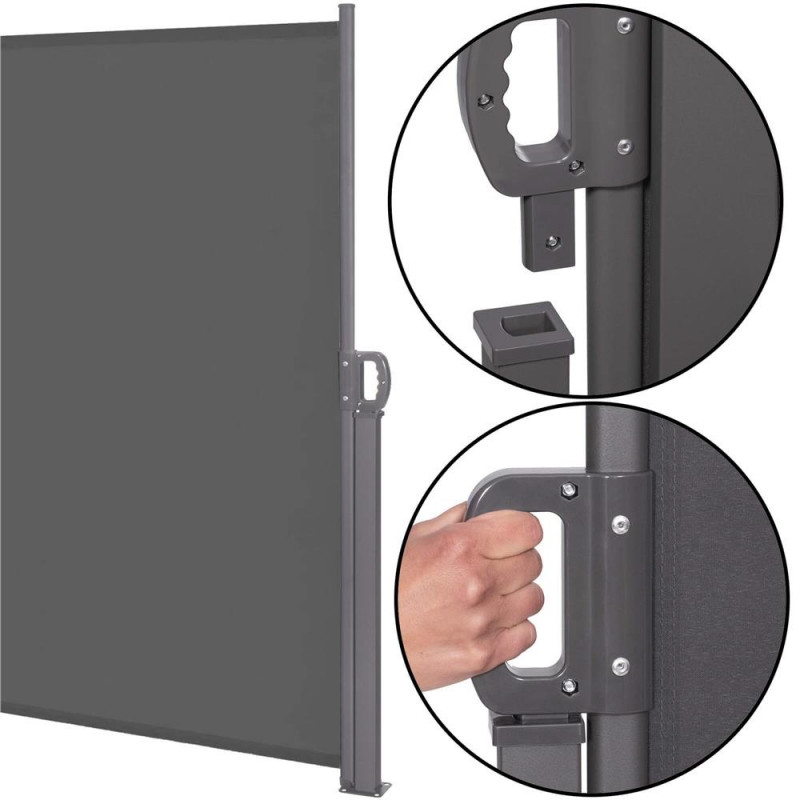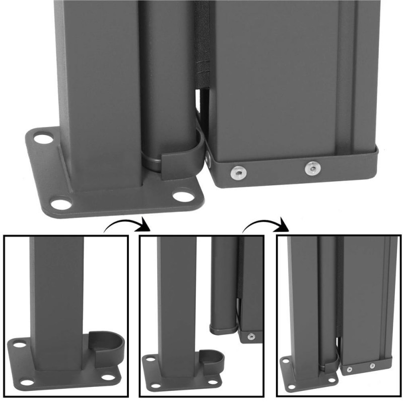 Dimensiunile bazei stalpului: 8 x 9 cm, grosime: 3,5 mm Cortina laterala ofera o protectie confortabila impotriva razelor soarelui si a rafalelor de vant, este potrivita pe terasa, balcon sau gradina.Posibilitatea de a monta suportul in pozitia dorita va permite sa ajustati cu usurinta lungimea marchizei pentru a se potrivi nevoilor dumneavoastra. Lungimea maxima a marchizei este de 300 cm, astfel incat, indiferent daca este vorba de un balcon, o terasa sau o gradina, puteti acoperi cu usurinta o suprafata convenabila.Cadrul copertinei este fabricat din otel solid, asigurand rezistenta la conditiile meteorologice schimbatoare. In plus, finisajul acoperit cu pulbere garanteaza o protectie impotriva ruginii si a coroziunii rapide. Datorita constructiei solide a cadrului, marchiza ofera stabilitate, ceea ce permite o utilizare sigura.Kitul este livrat cu