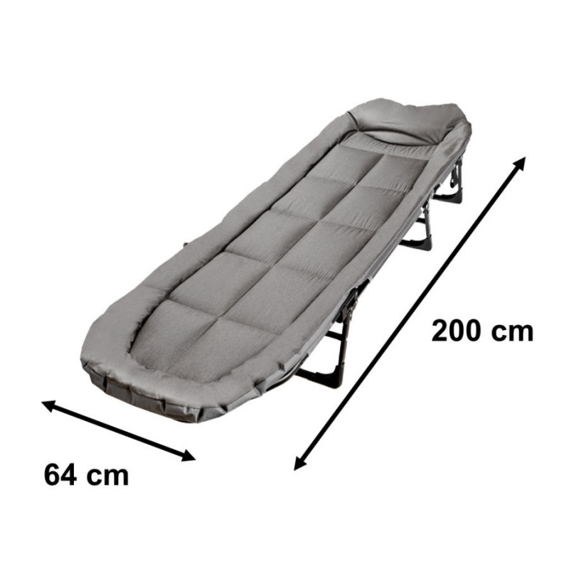Scurta descriere Pat pliabil multifunctional, ideal pentru camping, relaxare in aer liber sau utilizare ca pat de oaspeti. Designul compact si sistemul rapid de pliere permit transportul si depozitarea usoara. Salteaua confortabila si cadrul metalic solid asigura stabilitate si un somn odihnitor in orice situatie.