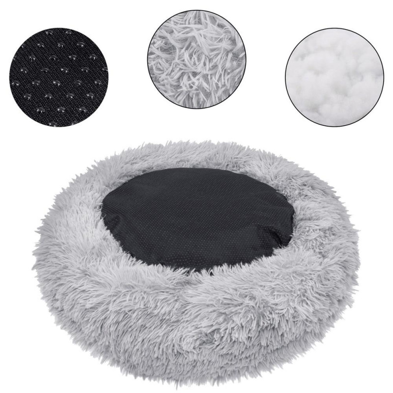 Baza antiderapanta: da Acest pat pufos pentru catei si pisici va oferi animalului de companie un loc confortabil pentru odihna si somn. Materialul extrem de placut si pufos ofera un confort extraordinar, oferind in acelasi timp cainilor sau pisicilor un colt cald si sigur. Culcusul prezentat va fi un loc din care animalul tau de companie nu va dori sa se miste! Structura placuta, moale Materialul din care a fost facut patul va permite fiecarui animal de companie sa se simta confortabil si placut. Puful lung, extrem de placut la atingere, va infasoara animalul de companie, mentinandu-l cald. In plus, materialul moale si delicat nu va irita pielea animalutului. Fundul antiderapant, lipit ferm de sol Un mare avantaj al patului este baza sa, care este echipata cu butoane de cauciuc antiderapante, pentru a preveni alunecarea, oferind atat cainilor mai in varsta, cat si cateilor vioi, un sentiment de siguranta. Potrivit pentru a fi spalat in masina Dupa cum stiti, animalelor de companie le place adesea sa se murdareasca si astfel pot murdari culcusul. Tot ce trebuie sa faceti este sa indepartati bumbacul de umplutura – ascuns in spatele fermoarului din partea de jos – si sa spalati patul la 30 de grade. In plus, posibilitatea de a patrunde in interiorul produsului permite inlocuirea umplerii acestuia. Atentie! Umplutura nu poate fi spalata! Patul pufos nu este doar un element confortabil al animalului de companie, ci si un plus de design pentru interior dumneavoastra. Culoarea frumoasa, manopera solida si forma atractiva fac ca produsul sa arate elegant si eficient.