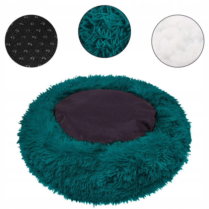 Baza antiderapanta Acest pat pufos pentru catei si pisici va oferi animalului de companie un loc confortabil pentru odihna si somn. Materialul extrem de placut si pufos ofera un confort extraordinar, oferind in acelasi timp cainilor sau pisicilor un colt cald si sigur. Culcusul prezentat va fi un loc din care animalul tau de companie nu va dori sa se miste! Structura placuta, moale Materialul din care a fost facut patul va permite fiecarui animal de companie sa se simta confortabil si placut. Puful lung, extrem de placut la atingere, va infasoara animalul de companie, mentinandu-l cald. In plus, materialul moale si delicat nu va irita pielea sau parul unui caine sau al unei pisici. Fundul antiderapant, lipit ferm de sol Un mare avantaj al patului este baza sa, care este echipata cu proeminente antiderapante, datorita careia acesta nu aluneca pe podea. Acest element asigura faptul ca produsul se lipeste de podea stabil si nu se misca atunci cand animalul de companie se aseaza in el. Potrivit pentru a fi spalat in masina Dupa cum stiti, animalelor de companie le place adesea sa se murdareasca si astfel pot murdari culcusul. Prin urmare, producatorul s-a asigurat ca acesta poate fi reimprospatat cu usurinta. Tot ce trebuie sa faceti este sa indepartati bumbacul de umplutura - ascuns in spatele fermoarului din partea de jos - si sa spalati patul la 30 de grade. In plus, posibilitatea de a patrunde in interiorul produsului permite inlocuirea umplerii acestuia. Atentie! Umplutura nu poate fi spalata! Functionalitatea merge mana in mana cu un aspect atragator Patul pufos nu este doar un element confortabil al spatiului animalului de companie, ci si un plus de design la interior. Culoarea frumoasa, manopera solida si forma atractiva fac ca produsul sa arate elegant si eficient. AVANTAJE fabricat dintr-un material placut de inalta calitate,