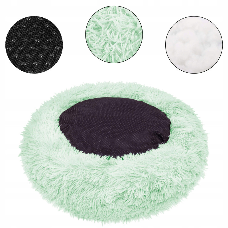 Baza antiderapanta. Acest pat pufos pentru catei si pisici va oferi animalului de companie un loc confortabil pentru odihna si somn. Materialul extrem de placut si pufos ofera un confort extraordinar, oferind in acelasi timp cainilor sau pisicilor un colt cald si sigur. Culcusul prezentat va fi un loc din care animalul tau de companie nu va dori sa se miste! Structura placuta, moale Materialul din care a fost facut patul va permite fiecarui animal de companie sa se simta confortabil si placut. Puful lung, extrem de placut la atingere, va infasoara animalul de companie, mentinandu-l cald. In plus, materialul moale si delicat nu va irita pielea sau parul unui caine sau al unei pisici. Fundul antiderapant, lipit ferm de sol Un mare avantaj al patului este baza sa, care este echipata cu proeminente antiderapante, datorita careia acesta nu aluneca pe podea. Acest element asigura faptul ca produsul se lipeste de podea stabil si nu se misca atunci cand animalul de companie se aseaza in el. Potrivit pentru a fi spalat in masina Dupa cum stiti, animalelor de companie le place adesea sa se murdareasca si astfel pot murdari culcusul. Prin urmare, producatorul s-a asigurat ca acesta poate fi reimprospatat cu usurinta. Tot ce trebuie sa faceti este sa indepartati bumbacul de umplutura - ascuns in spatele fermoarului din partea de jos - si sa spalati patul la 30 de grade. In plus, posibilitatea de a patrunde in interiorul produsului permite inlocuirea umplerii acestuia. Atentie! Umplutura nu poate fi spalata! Functionalitatea merge mana in mana cu un aspect atragator Patul pufos nu este doar un element confortabil al spatiului animalului de companie, ci si un plus de design la interior. Culoarea frumoasa, manopera solida si forma atractiva fac ca produsul sa arate elegant si eficient. AVANTAJE fabricat dintr-un material placut de inalta calitate,