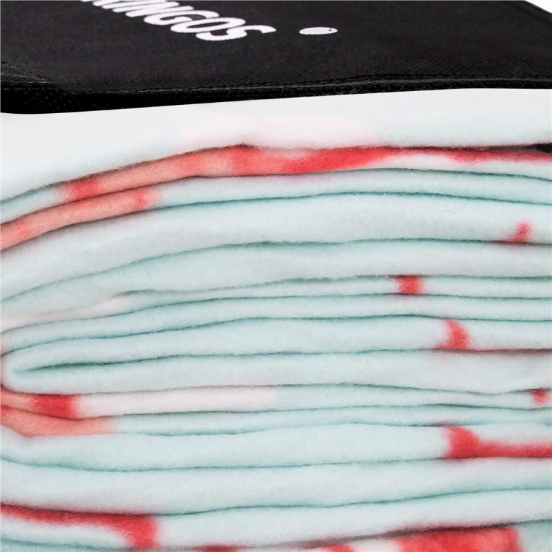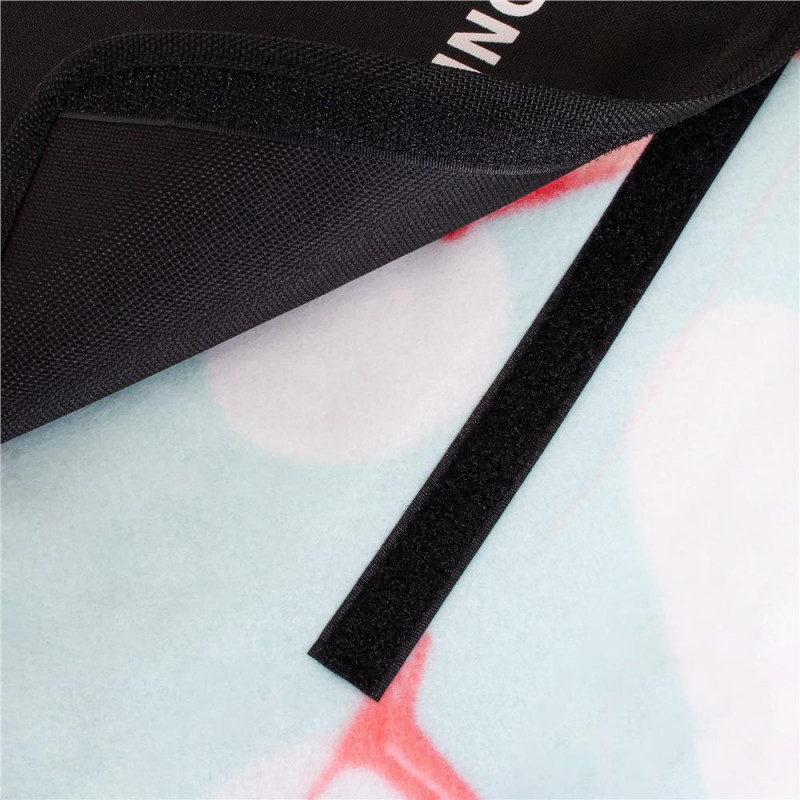 Functioneaza bine pe orice suprafata: nisip, pamant, iarba sau pietris. Patura se pliaza in dimensiunea mica a unei genti cu velcro. In plus, are un maner care va va permite sa o transportati usor de la masina la plaja sau din casa in gradina pentru a va bucura de vremea frumoasa pe o suprafata confortabila. Puteti plia patura in trei pasi: