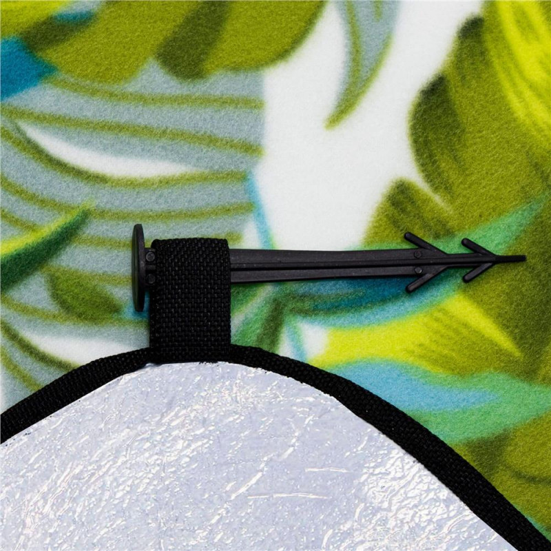 Functioneaza bine pe orice suprafata: nisip, pamant, iarba sau pietris. Patura se pliaza in dimensiunea mica a unei genti cu velcro. In plus, are un maner care va va permite sa o transportati usor de la masina la plaja sau din casa in gradina pentru a va bucura de vremea frumoasa pe o suprafata confortabila. Puteti plia patura in trei pasi: