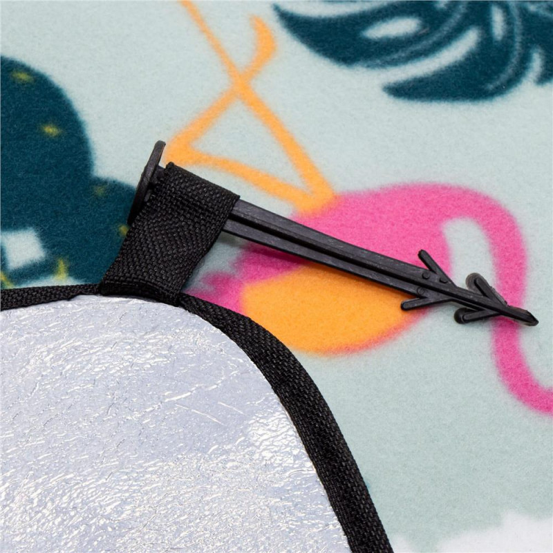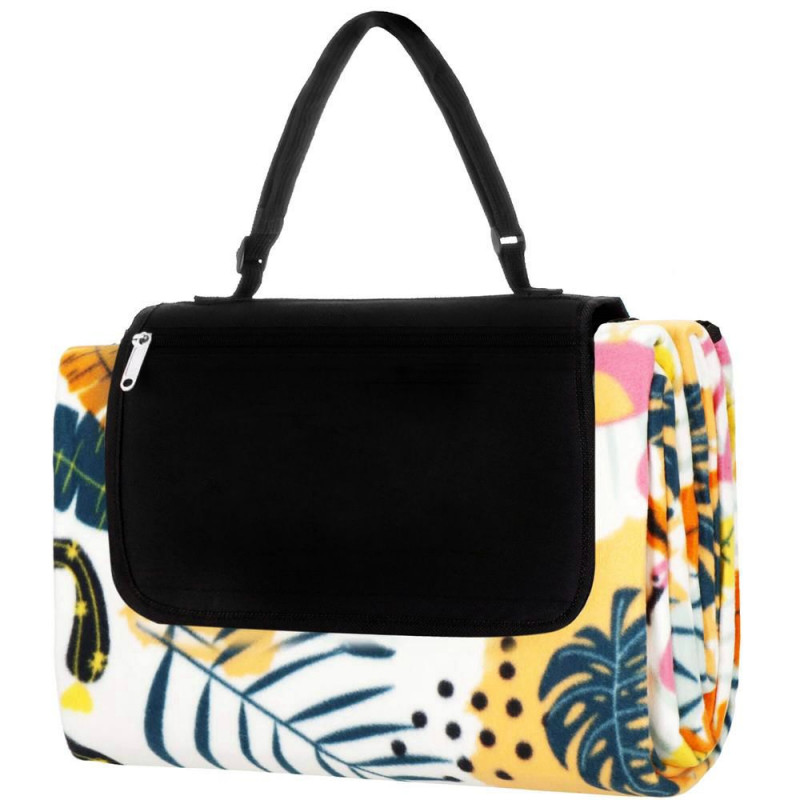 Functioneaza bine pe orice suprafata: nisip, pamant, iarba sau pietris. Patura se pliaza in dimensiunea mica a unei genti cu velcro. In plus, are un maner care va va permite sa o transportati usor de la masina la plaja sau din casa in gradina pentru a va bucura de vremea frumoasa pe o suprafata confortabila. Puteti plia patura in trei pasi:
