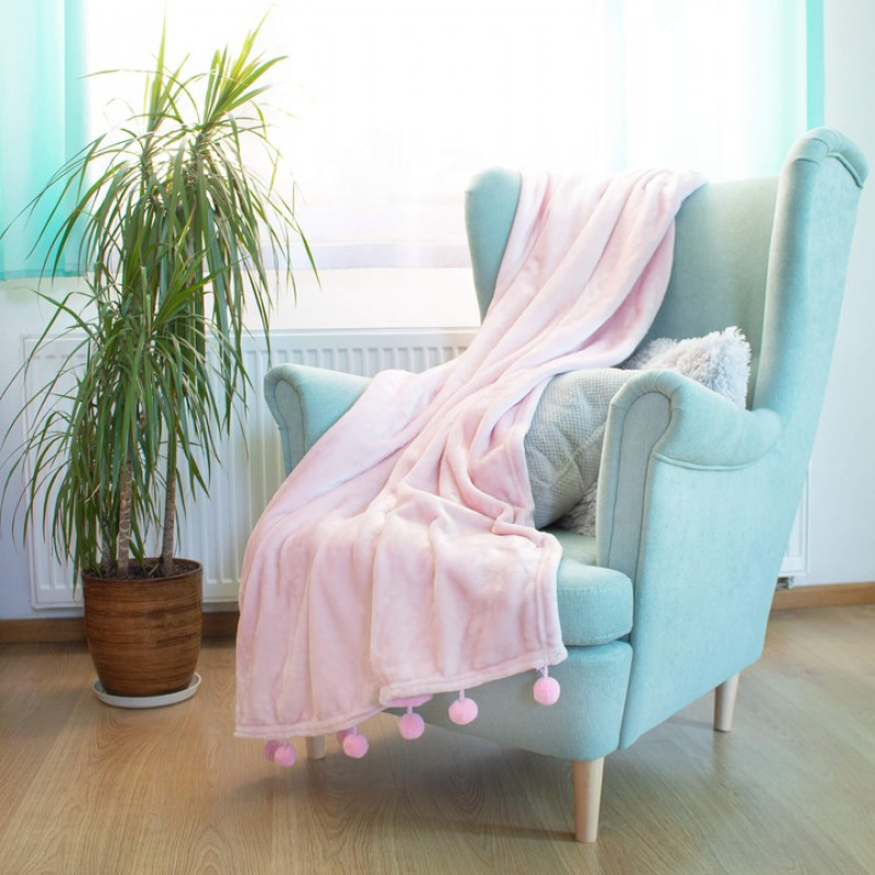 Distanța dintre pompoanele de pe fiecare parte este de 20 cm. Patura moale si placuta este solutia perfecta pentru serile lungi de toamna langa semineu. Textura sa extrem de placuta si confortabila te face sa te simti extrem de fericit si placut in ea. Culorile moi se vor potrivi perfect in orice design interior, incalzind incaperea.Produsul este foarte placut la atingere datorita tesaturii din poliester plusat. O decoratiune suplimentara a paturii sunt pompoanele agatate, care sunt amplasate pe 2 laturi ale paturii. Datorita acestui detaliu, patura armonizeaza intreg spatiul indiferent unde alegi sa o amplasezi.Cuvertura de pat este destul de groasa, ceea ce sporeste confortul termic in timpul utilizarii. Datorita tesaturii fluide, produsul nu necesita calcare si arata intotdeauna bine. AVANTAJELE PRODUSULUI: