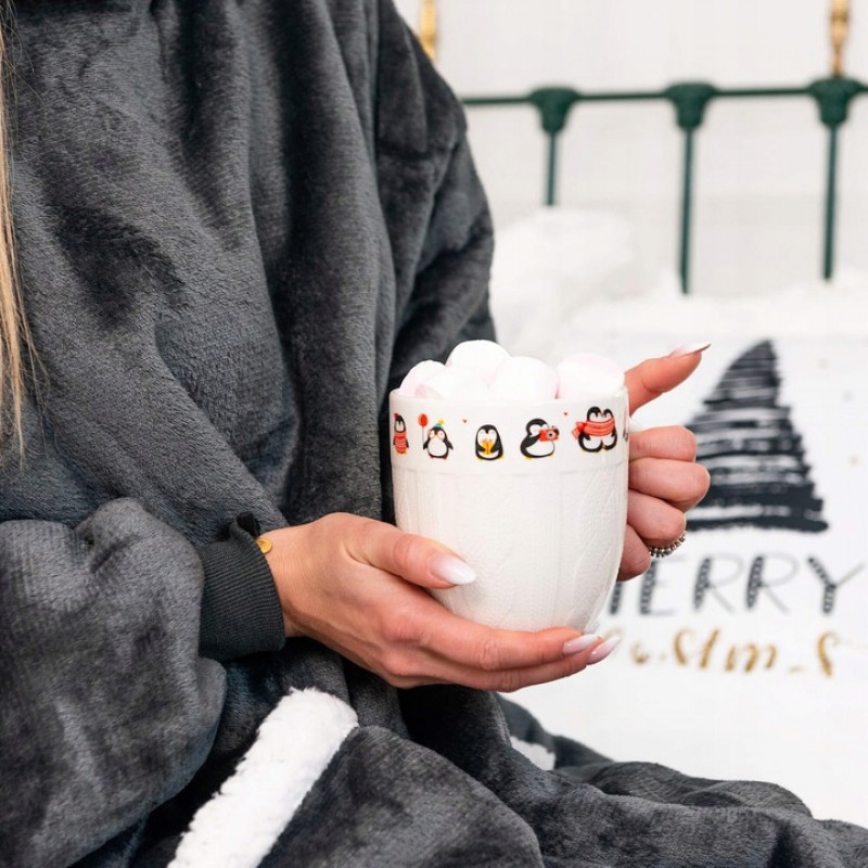 Dimensiuni de buzunar: 19 x 18 cm In afara ferestrei, gri-albastru, frunzele incep sa cada din copaci, iar temperaturile se apropie de minusuri. Cum poti avea grija cu usurinta de confortul si starea ta de spirit in astfel de zile? Hanoracul-patura, deosebit de dragut este solutia perfecta in principal pentru toate persoanele friguroase - cele care se plang constant de temperaturile scazute si care racesc usor. Mai presus de toate, este foarte calduros, confortabil si placut la atingere. Lucrul de acasa sau o seara rece langa o lumanare aromata cu acest produs va fi mai placuta si mai calduroasa de acum incolo!