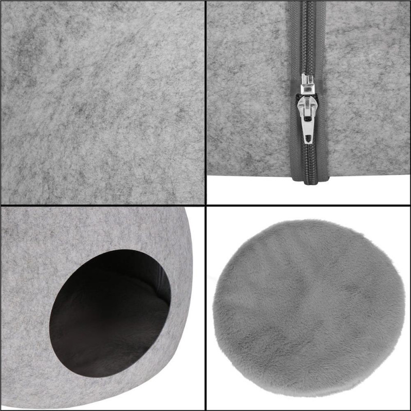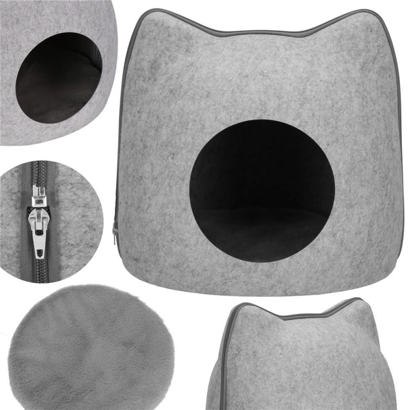Grosimea muchiei: 2 mm Patul pentru pisici va va permite sa oferiti animalului dvs. de companie un loc regal pentru odihna. Materialul extrem de placut, pufos, asigura un confort deosebit, oferind in acelasi timp pisicii dvs. un colt cald si sigur. Materialul patului va face orice animal de companie sa se simta confortabil. Firele lungi, care sunt extrem de placute la atingere, va vor invalui animalul de companie in caldura. Mai mult, materialul moale si delicat nu va irita pielea sau blana pisoiului dumneavoastra. Un mare avantaj al patului este baza sa, care a fost prevazuta cu stifturi antiderapante pentru a preveni alunecarea patului pe podea. Acest element asigura faptul ca produsul se lipeste ferm de podea si nu se misca atunci cand animalul intra in incapere. In interiorul patului exista o perna moale pentru a oferi si mai mult confort pisicii dumneavoastra. Perna poate fi indepartata si utilizata in afara patului pentru pisici si poate fi, de asemenea, spalata manual.