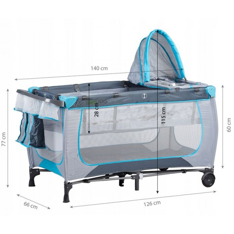 Scurta descriere: Patutul pliabil este o solutie multifunctionala pentru calatorii sau acasa. Usor de pliat si transportat, include masuta de infasat si un strat intermediar pentru nou-nascuti. Peretii laterali din plasa asigura ventilatie optima si protectie impotriva insectelor. Dotat cu roti si sistem de siguranta, poate fi mutat fara efort si utilizat ca patut sau tarc de joaca.