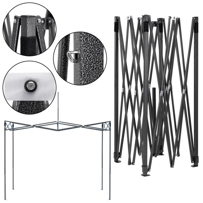 Scurta descriere: Pavilion pliabil pentru gradina cu structura metalica stabila si acoperis impermeabil. Ofera protectie eficienta impotriva soarelui si ploii usoare, fiind potrivit pentru curte, terasa sau evenimente in aer liber. Toate componentele se depoziteaza intr-o singura husa.
