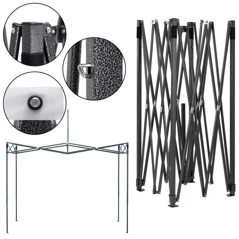 Scurta descriere: Pavilion pliabil pentru gradina, realizat cu structura metalica rezistenta si acoperis din material impermeabil. Ofera protectie eficienta impotriva soarelui si ploii usoare. Sistemul pliabil permite montaj rapid, iar toate componentele pot fi depozitate intr-o singura husa.